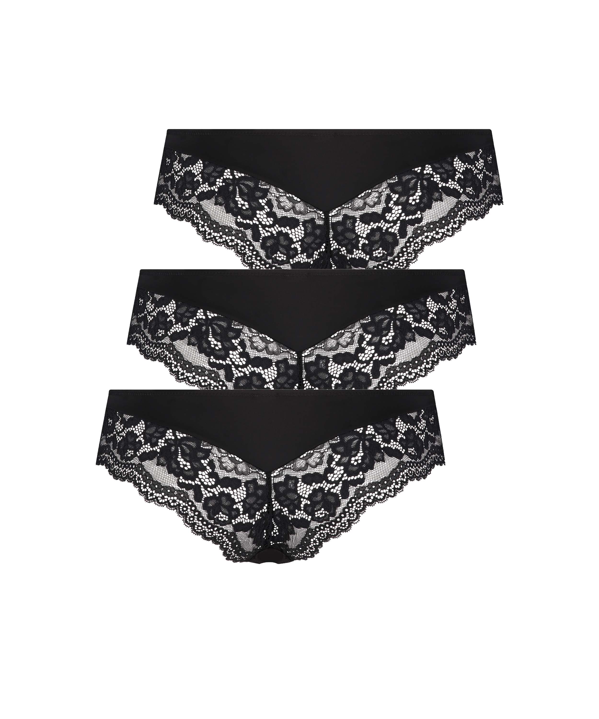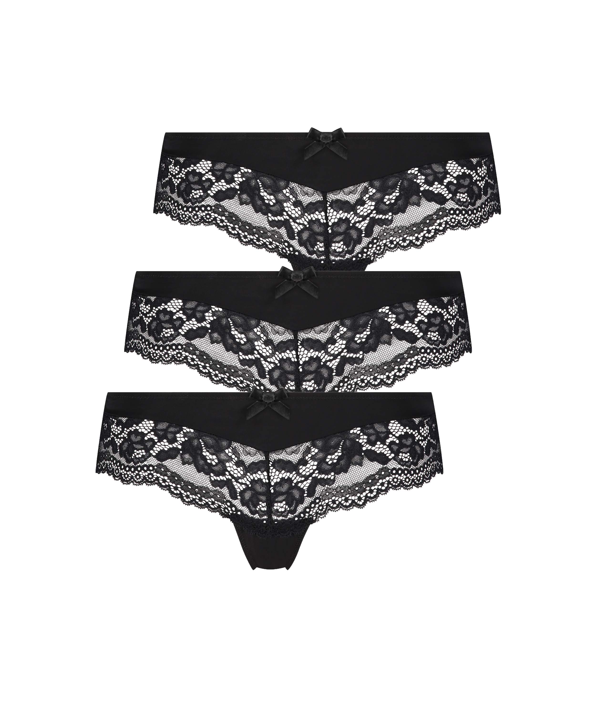 How cute are these Brazilian shorts? They have lots of lace, and a cute bow on the front. In a handy 3-pack!