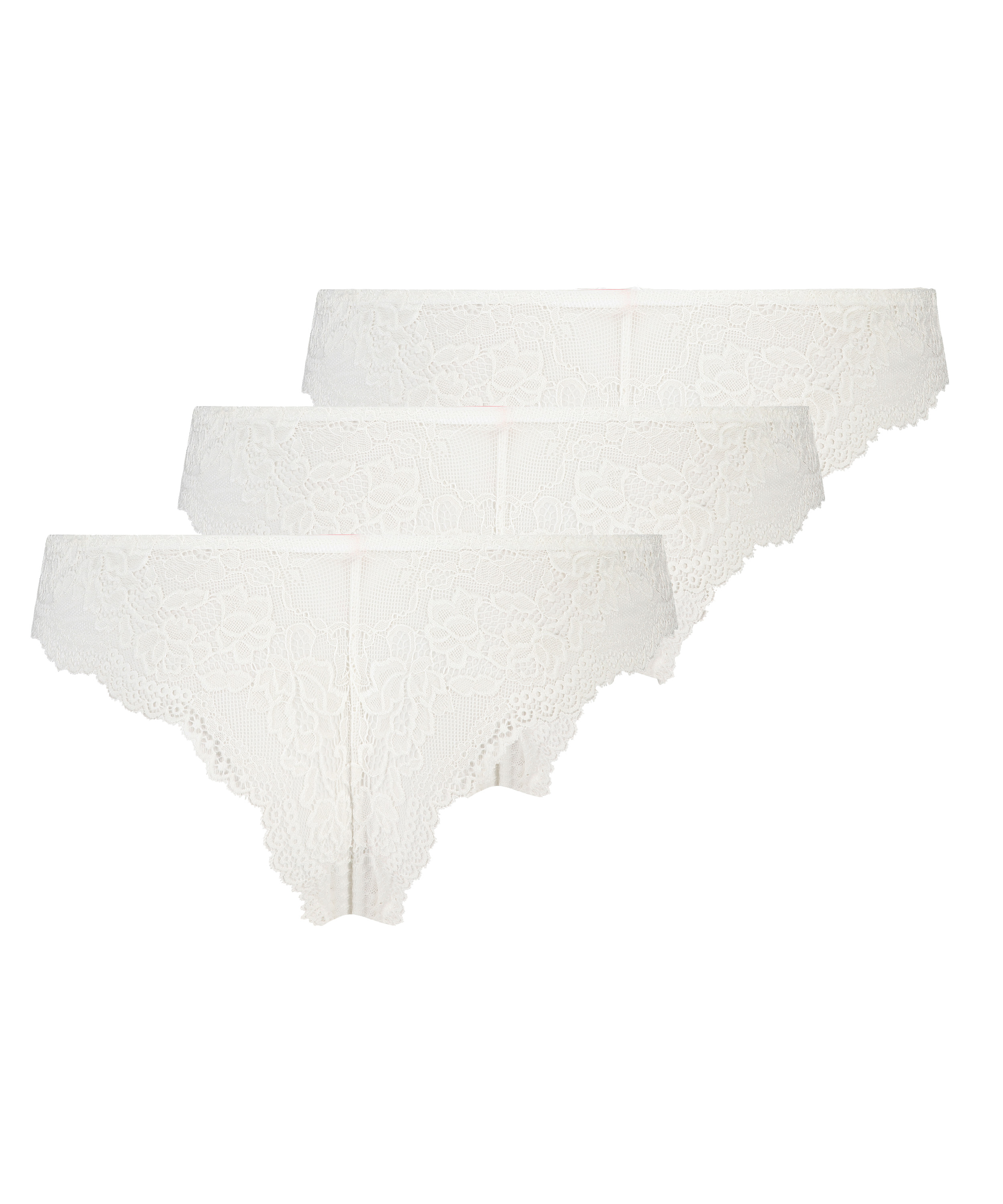 Feel sexy in these Brazilians! They are fully finished with lace and have a small bow on the front as an extra detail. Handy in a 3-pack, so you will look fabulous every day.