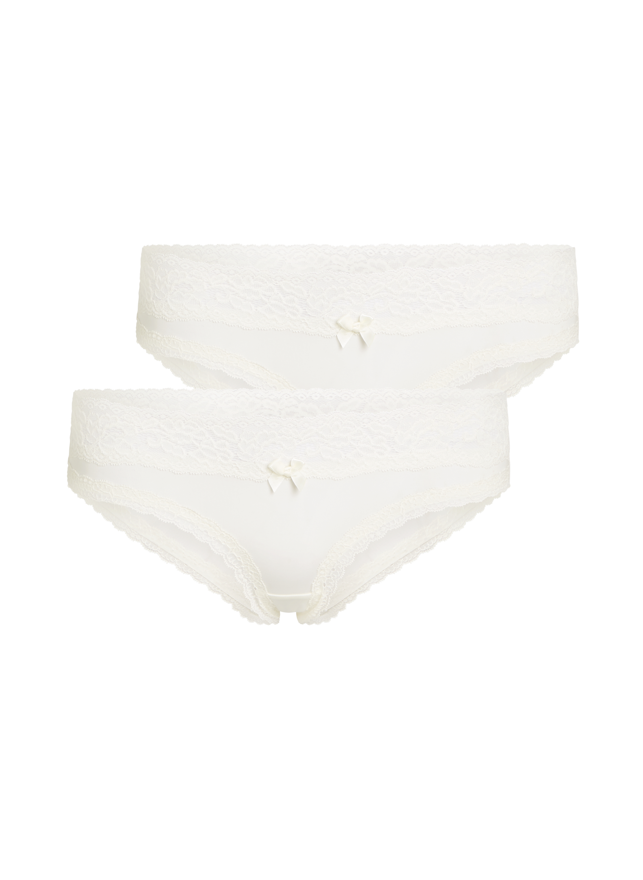Opt for this 3-pack of beautiful and comfortable Brazilian knickers. The Brazilian knickers are trimmed with lace and a small bow at the front. You can combine these knickers with many items, so they are a must-have in your collection! This super comfortable essential has a new and improved hand feel, very soft and stretchable. With a beautiful flower pattern lace which makes this style extra fashionable. Now available in a pack of 3!