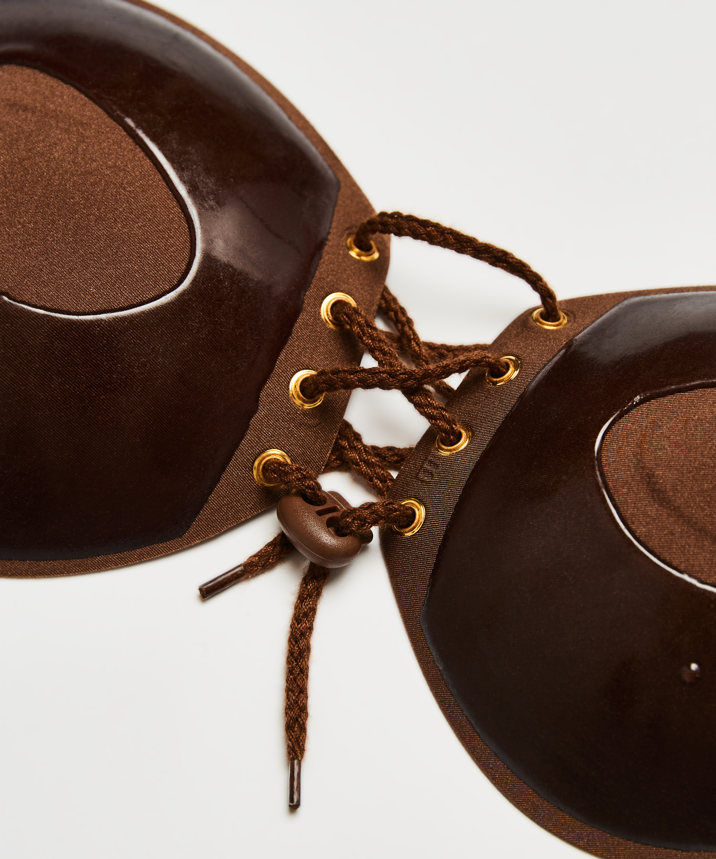 Wear an adhesive bra to leave your back and shoulders bare. This adhesive bra also has a push-up effect thanks to the lace-up closure in the middle. It will give you a lovely cleavage. You can wear this bra multiple times if you wash it by hand in lukewarm water after wearing. After leaving the bra to dry in the air, it is ready to wear again.