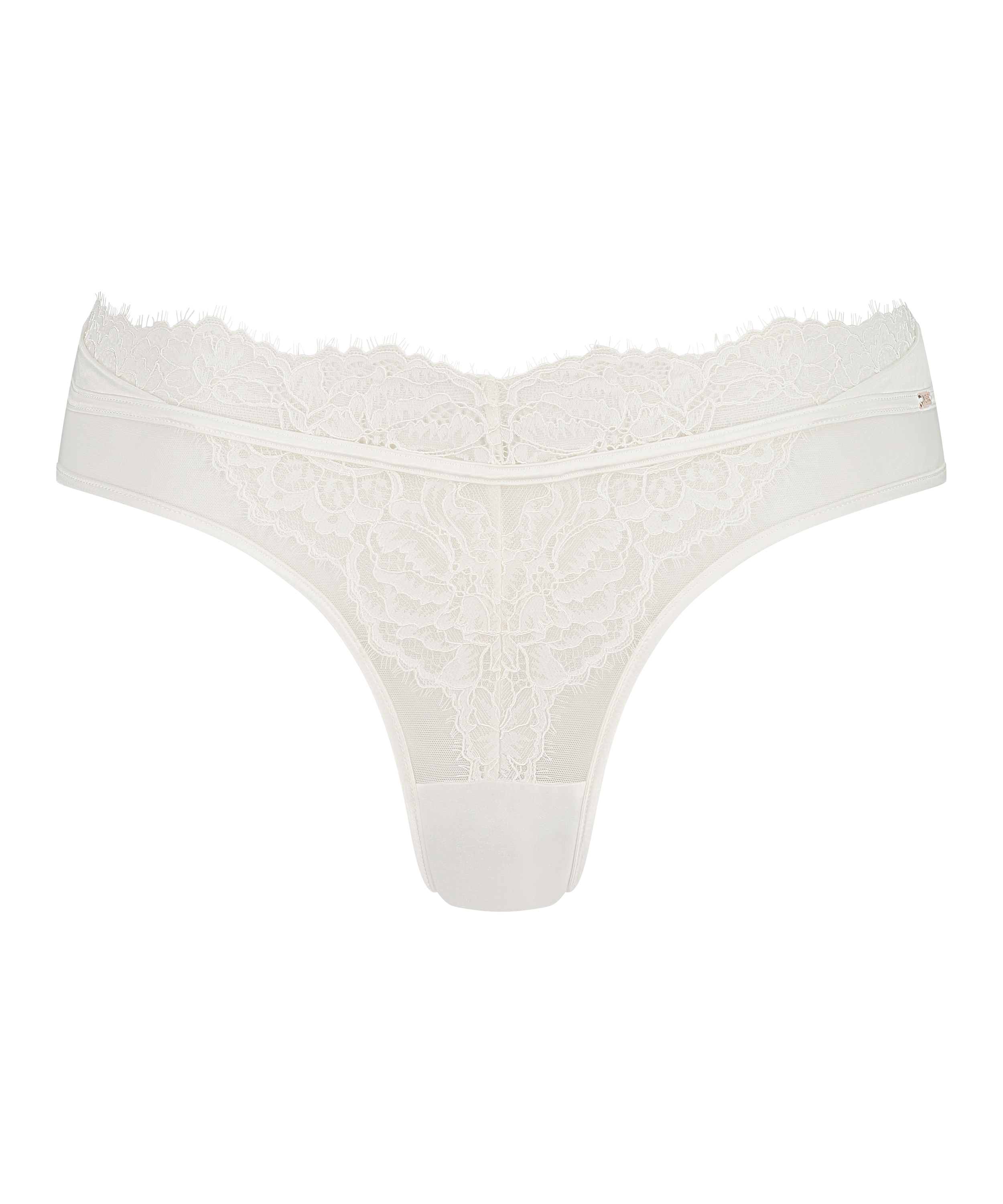 Feel comfortable and elegant with this brazilian! With a romantic overall lace look with a semi-transparent finish. The back is made of sexy sheer material for the best look. It is finished with a comfortable lace band. Find the matching bra to complete the set! Part of the Noir collection.