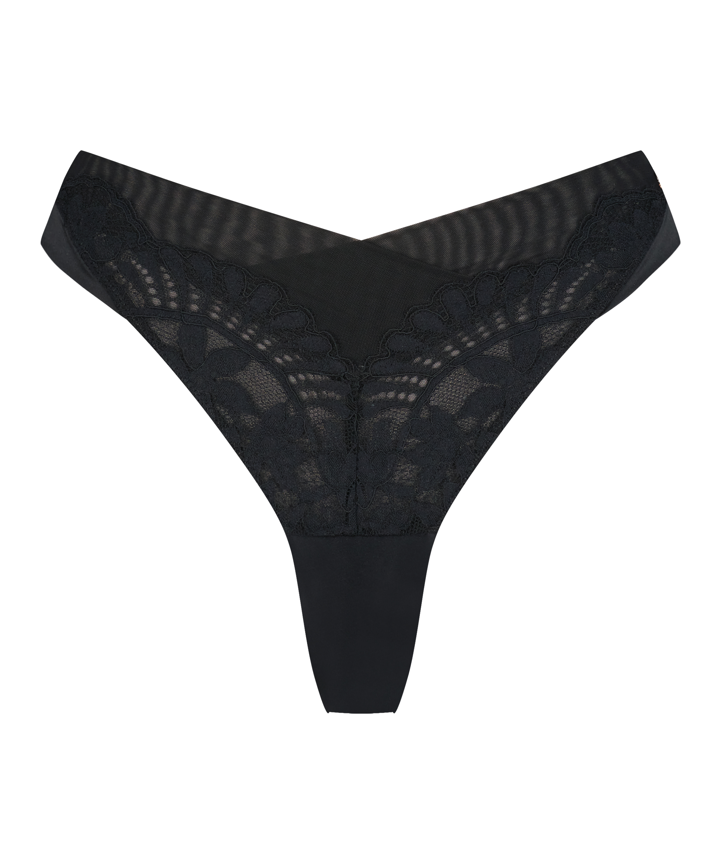 This stunning thong is a must-have for your wardrobe! The thong has lace and mesh details all over. Combine with matching items from the Noir collection for a complete lingerie set!