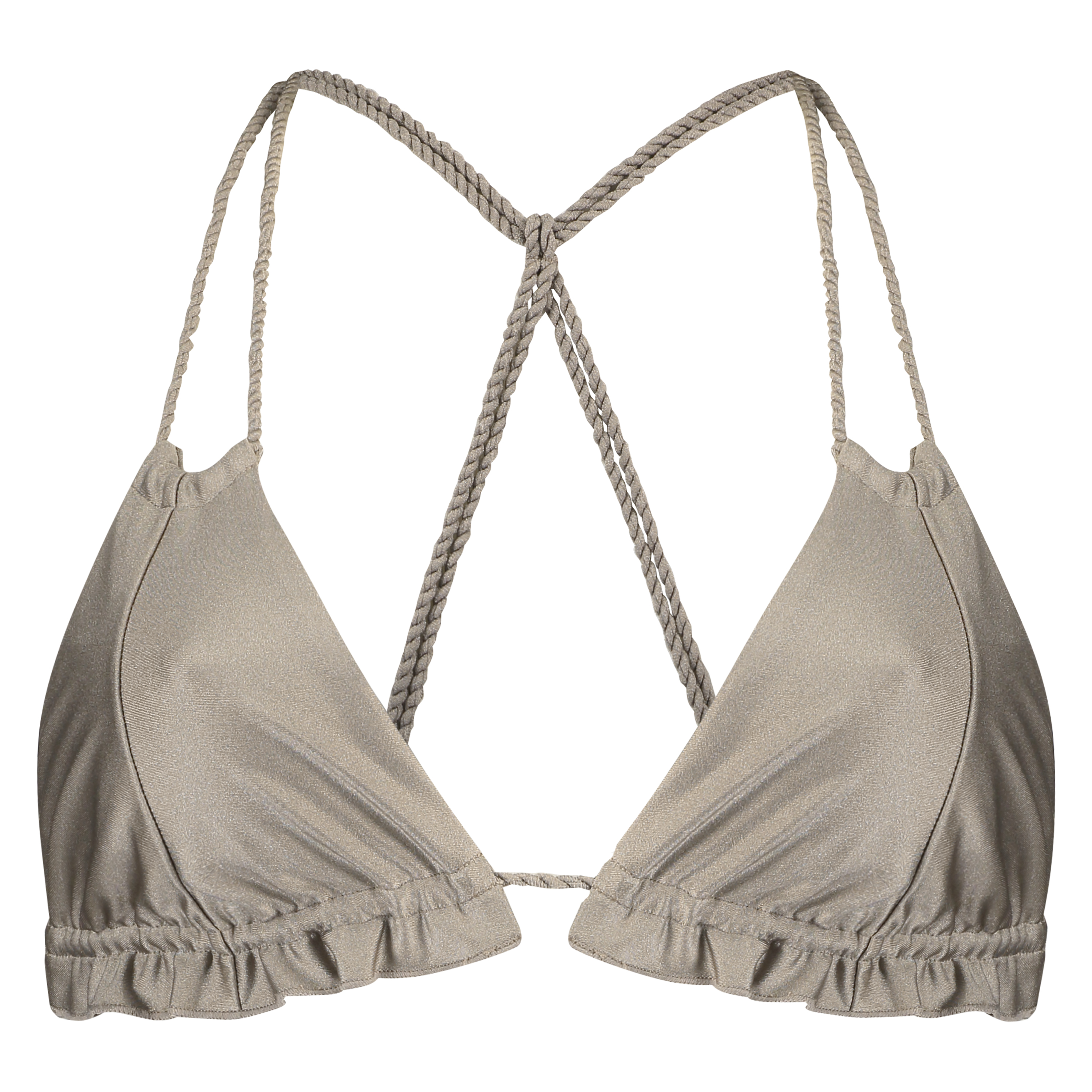 This triangle bikini top is a real must-have! The top has adjustable back straps, and is trimmed with fun ruffles below the cups. Combine with one of the matching items and fun beach accessories for a complete set!
