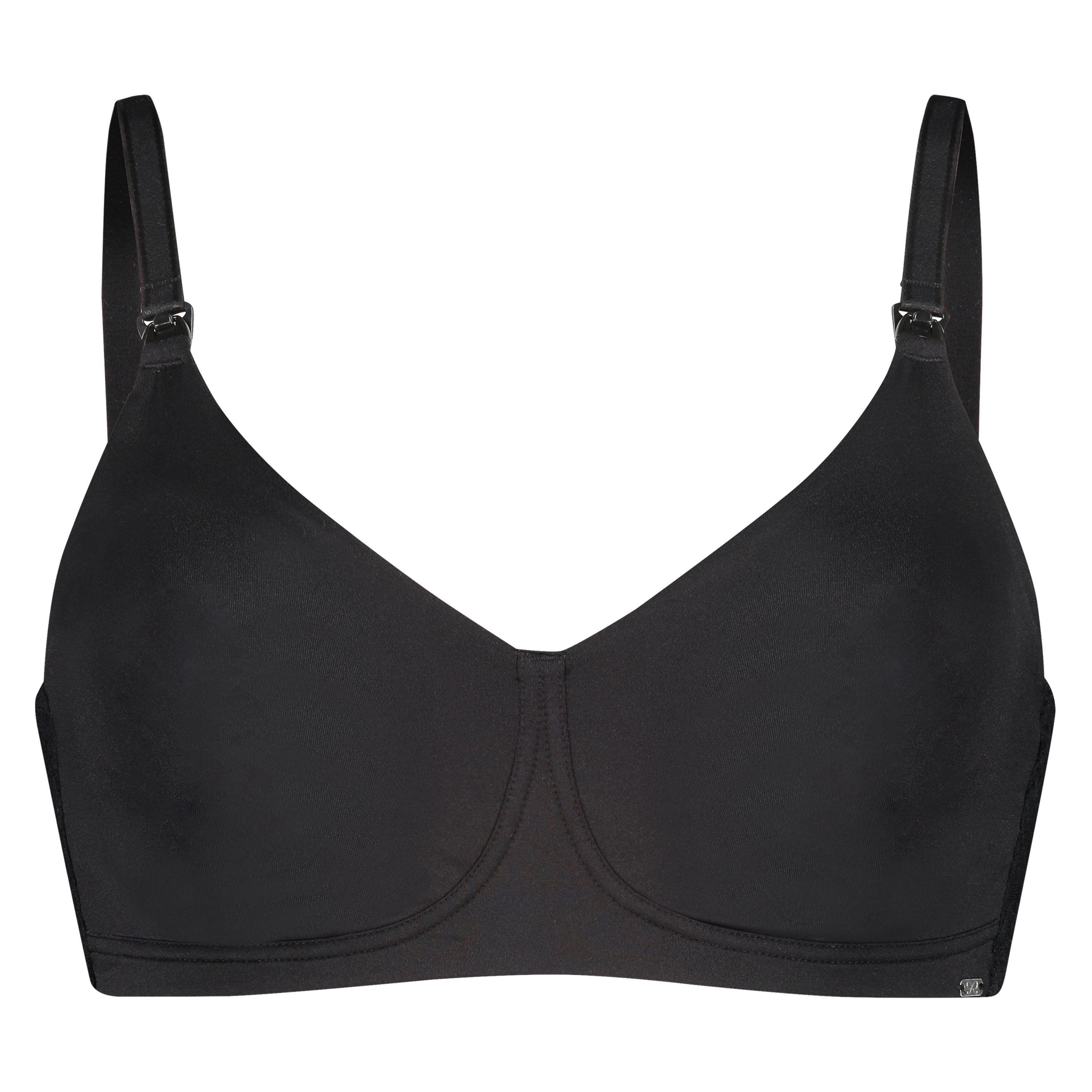The cups of this nursing bra are non-wired and non-padded. The cups can be unhooked from each other for easier nursing. The cups provide extra support underneath for greater comfort.