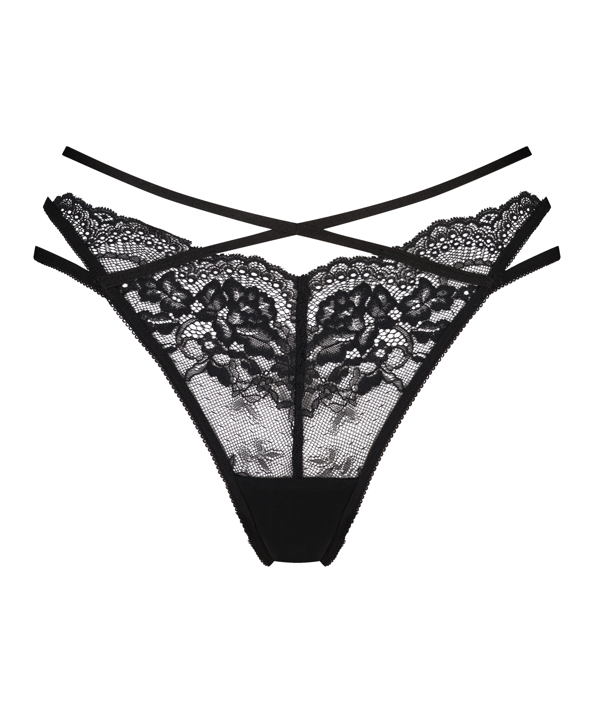 This thong is a must-have! The knickers are super-sexy, revealing a great deal of skin through the strappy details, yet with a hint of lacy elegance. Combine with a matching bra or bralette.