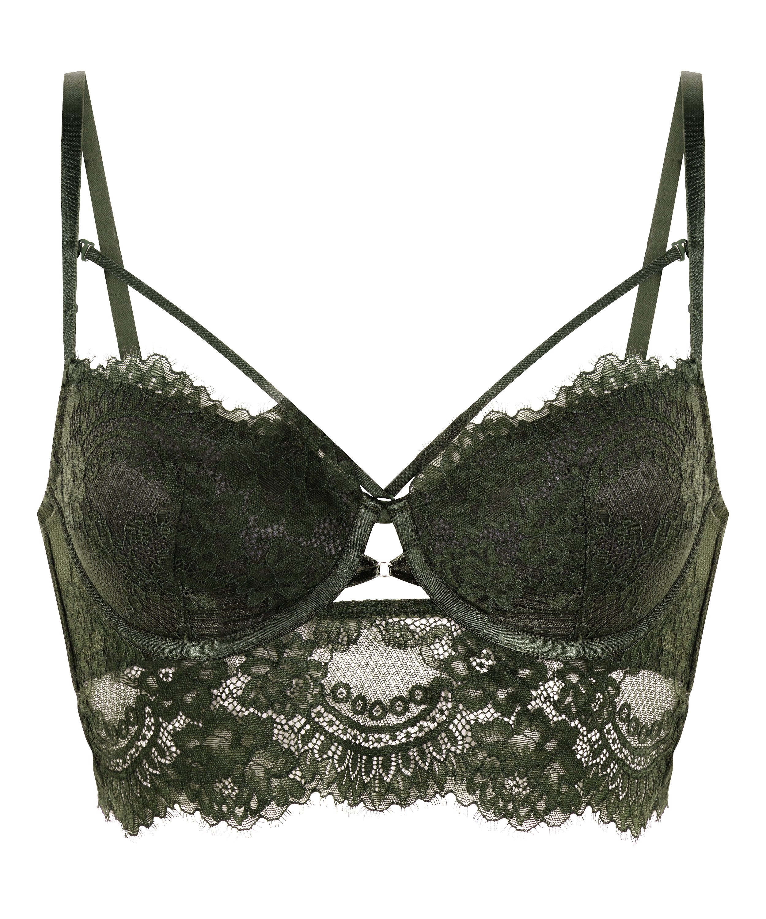 Sculpted support meets elegance in this bra. Desgined to enhance your shape, it features padded cups and underwire support for a lifted, secure fit. The longlinge silhouette adds extra structure and a flattering, smoothing effect. Combine with the matching bottom for a complete look.