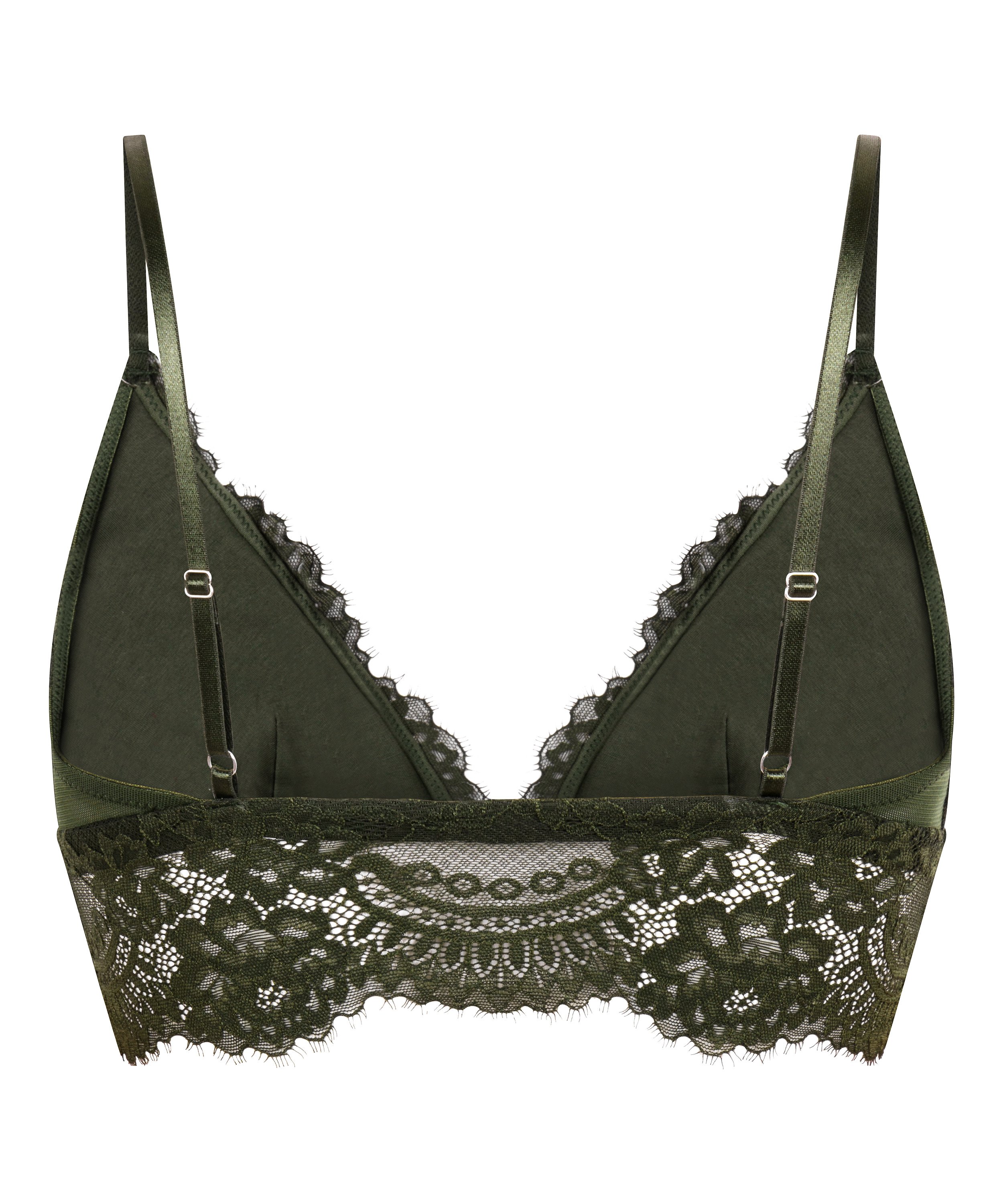 This bralette is your go to for lightweight support with maximum style, made from all over lace. The triangle cups flatter your natural shape, while the front closure adds a modern twist and a touch of convenience. Combine with the matching bottom for a complete look.