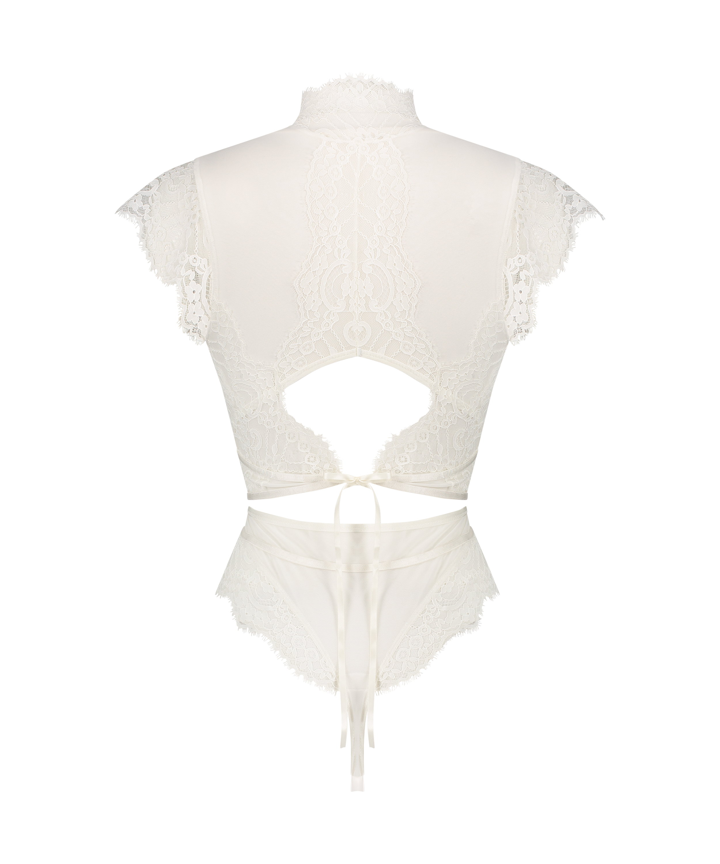 Feel sexy in this fantastically gorgeous body with short sleeves and open back. This body has beautiful button detailing on the front and is made almost entirely of lace.