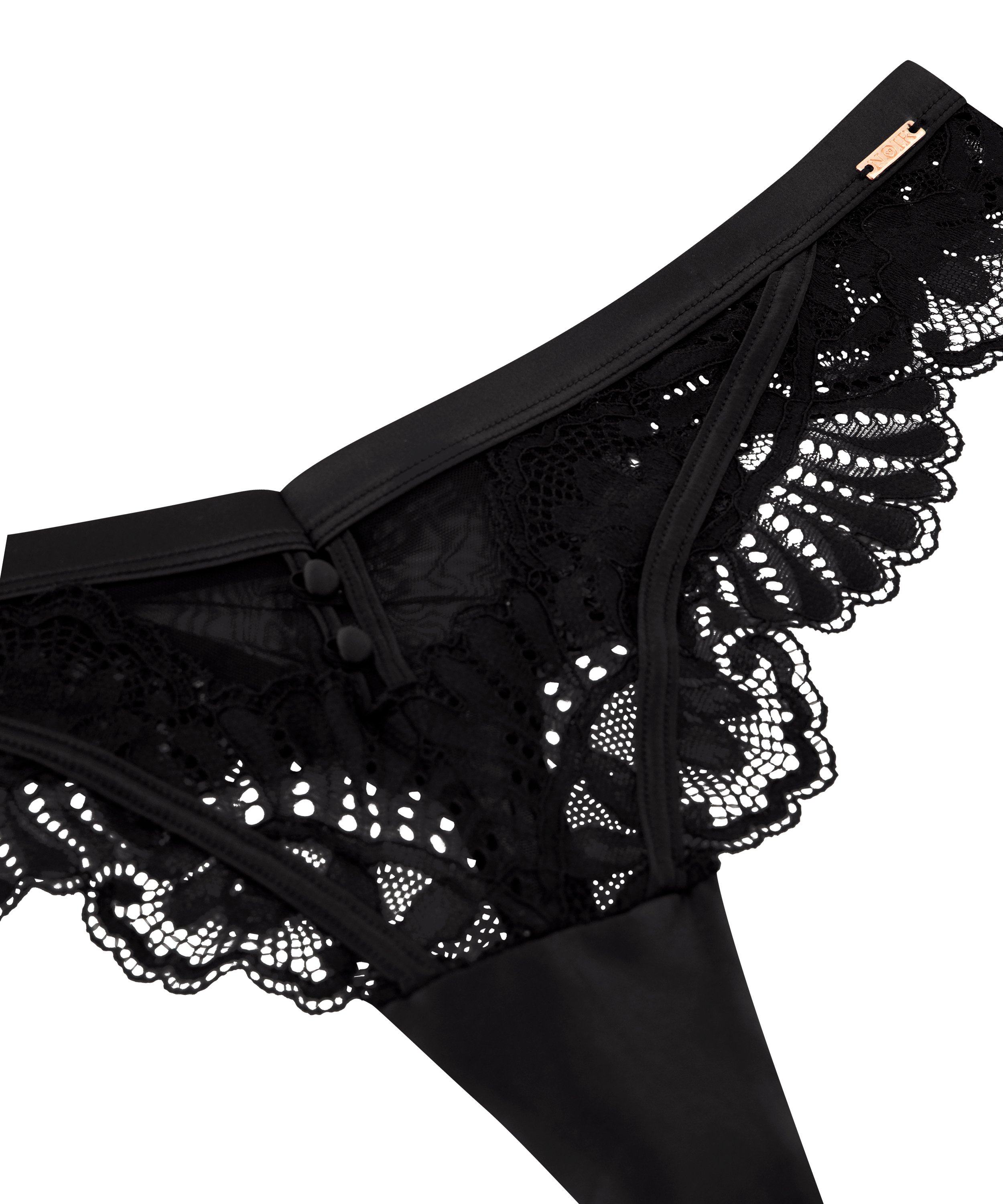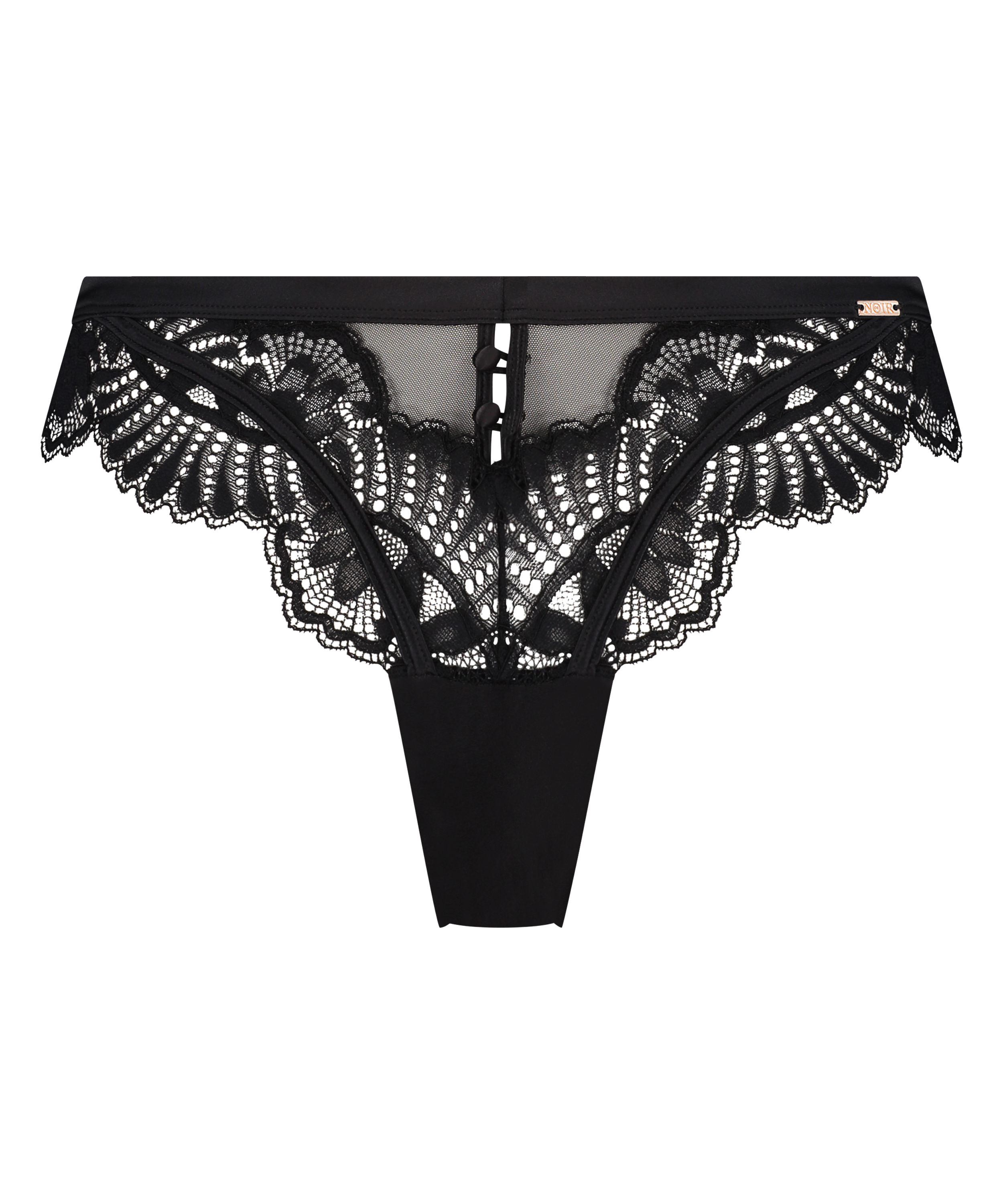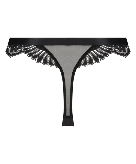 Feel self-confident in this thong! It has lace and mesh details. There is a pretty sating look on the rear. Combine with the matching bra for a complete lingerie set!