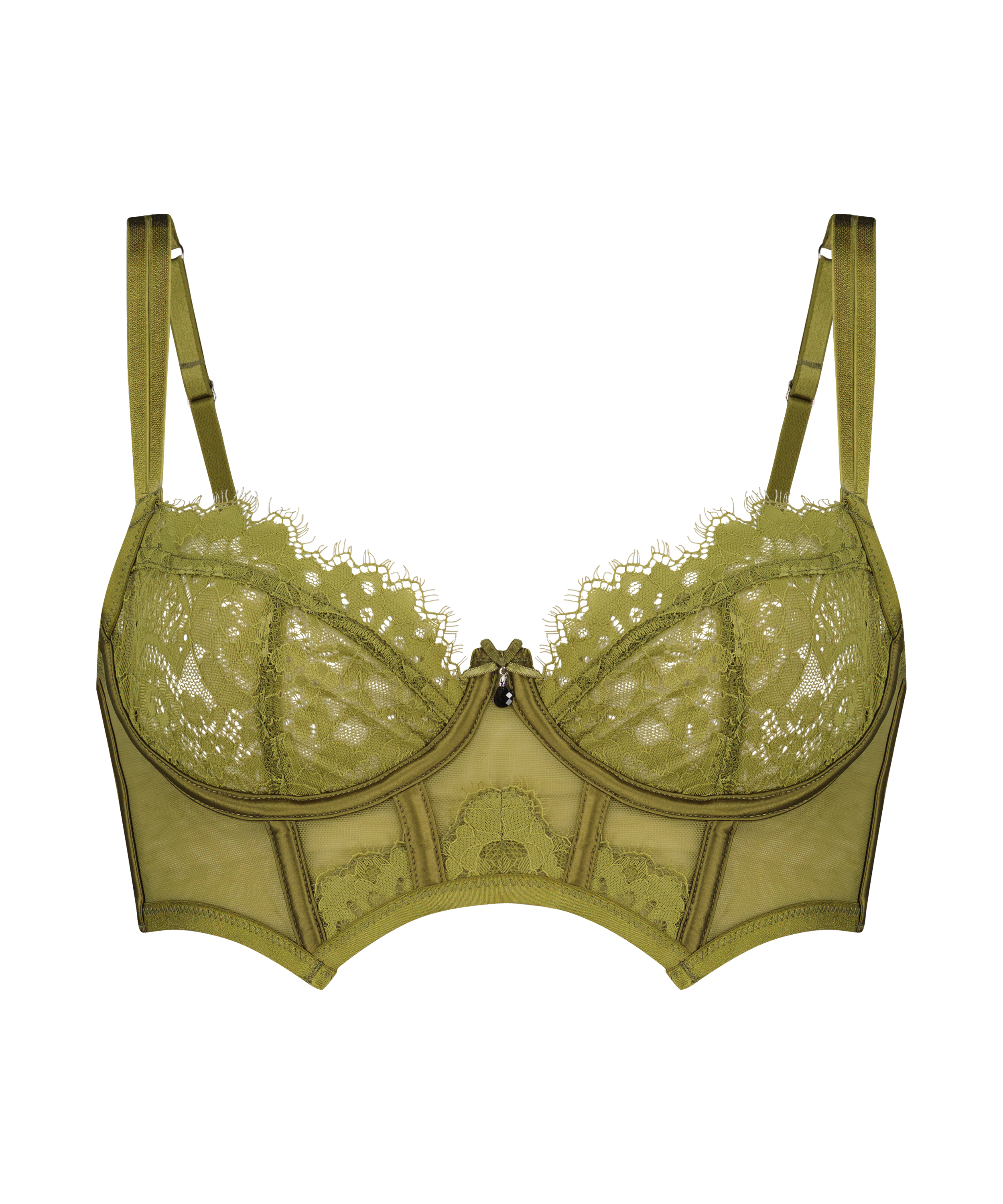 Treat yourself with our must-have Amelie longline bra! Effortlessly chic and elegant unpadded design with an underwire, to make you look and feel stunning while wearing it. With lace detailing and a delicate jeweled bow for a luxe finish to your look. Pair it with your favorite Amelie collection pieces to create a truly show-stopping lingerie set!