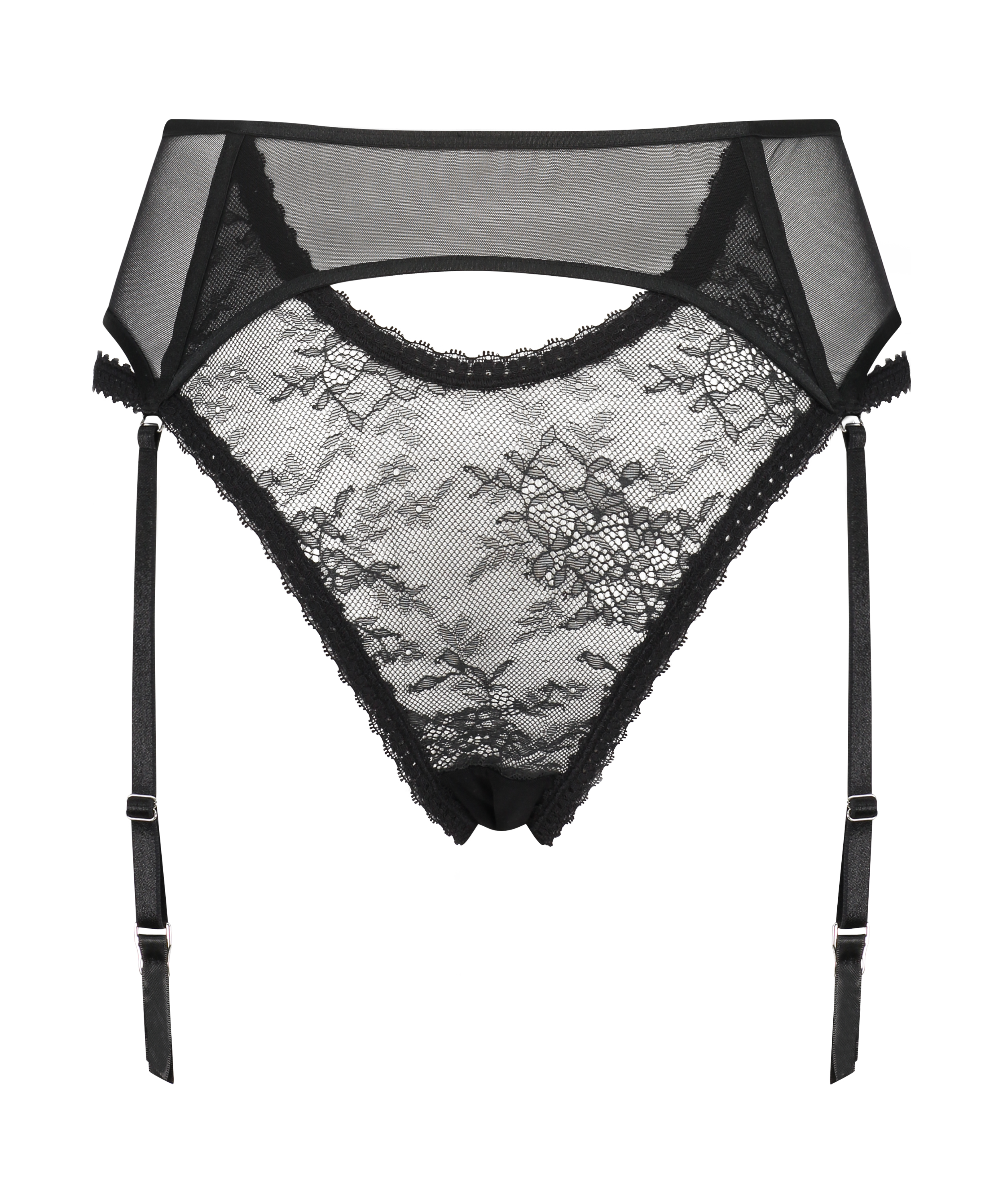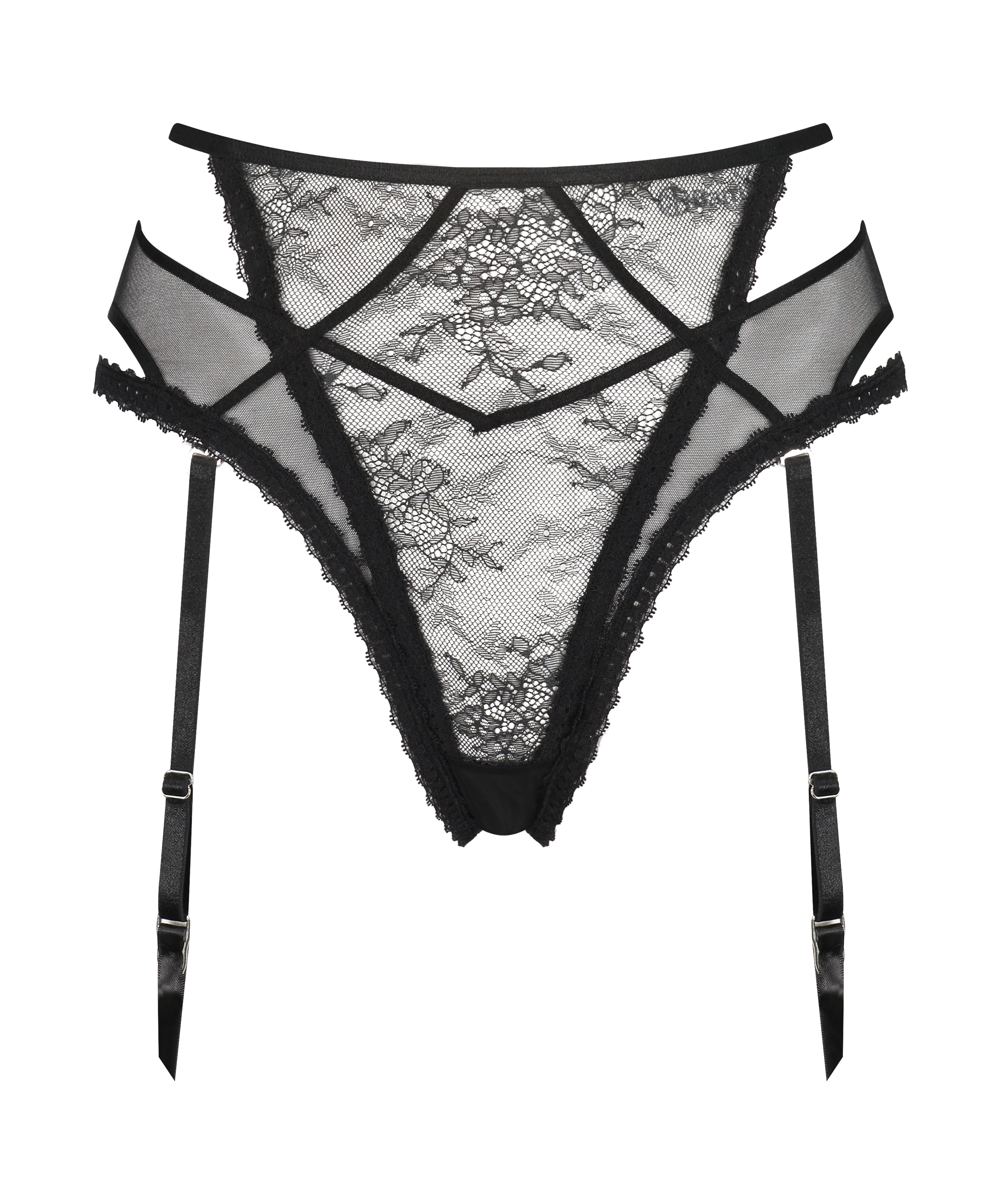 Fall in love with this brazilian! With a high leg and high waist fit. It has lots of lace and removable hosiery hooks! Pair with the matching bra. Part of our influencer collection.