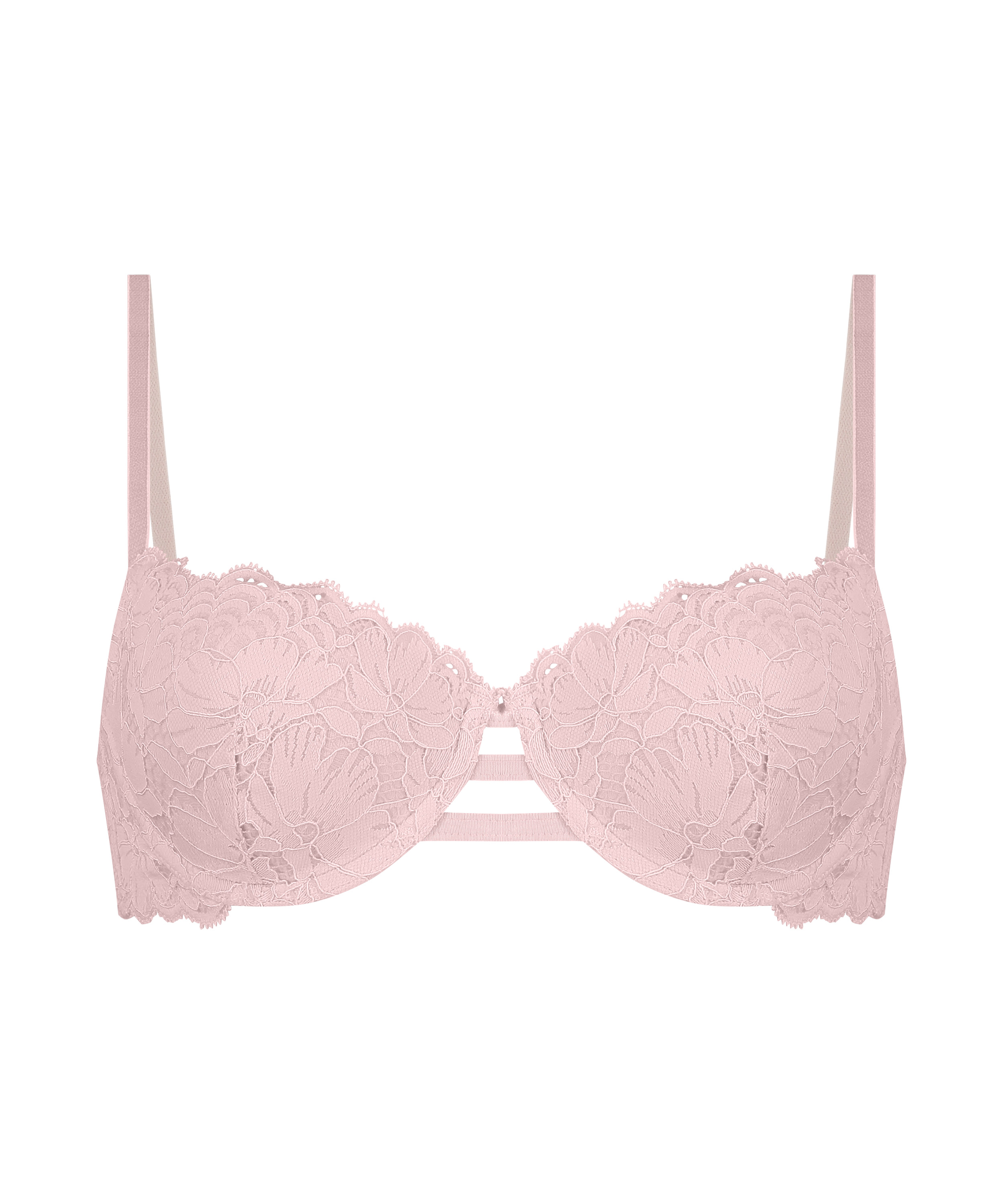 Savor the essence of sensuality with our Andrea bra! Luxuriously padded cups decorated in delicate lace fabric, coupled with an enticing strappy detail between them, evoke irresistible charm. Elevate your ensemble by coordinating with the matching knickers, giving confidence and charm at every turn!