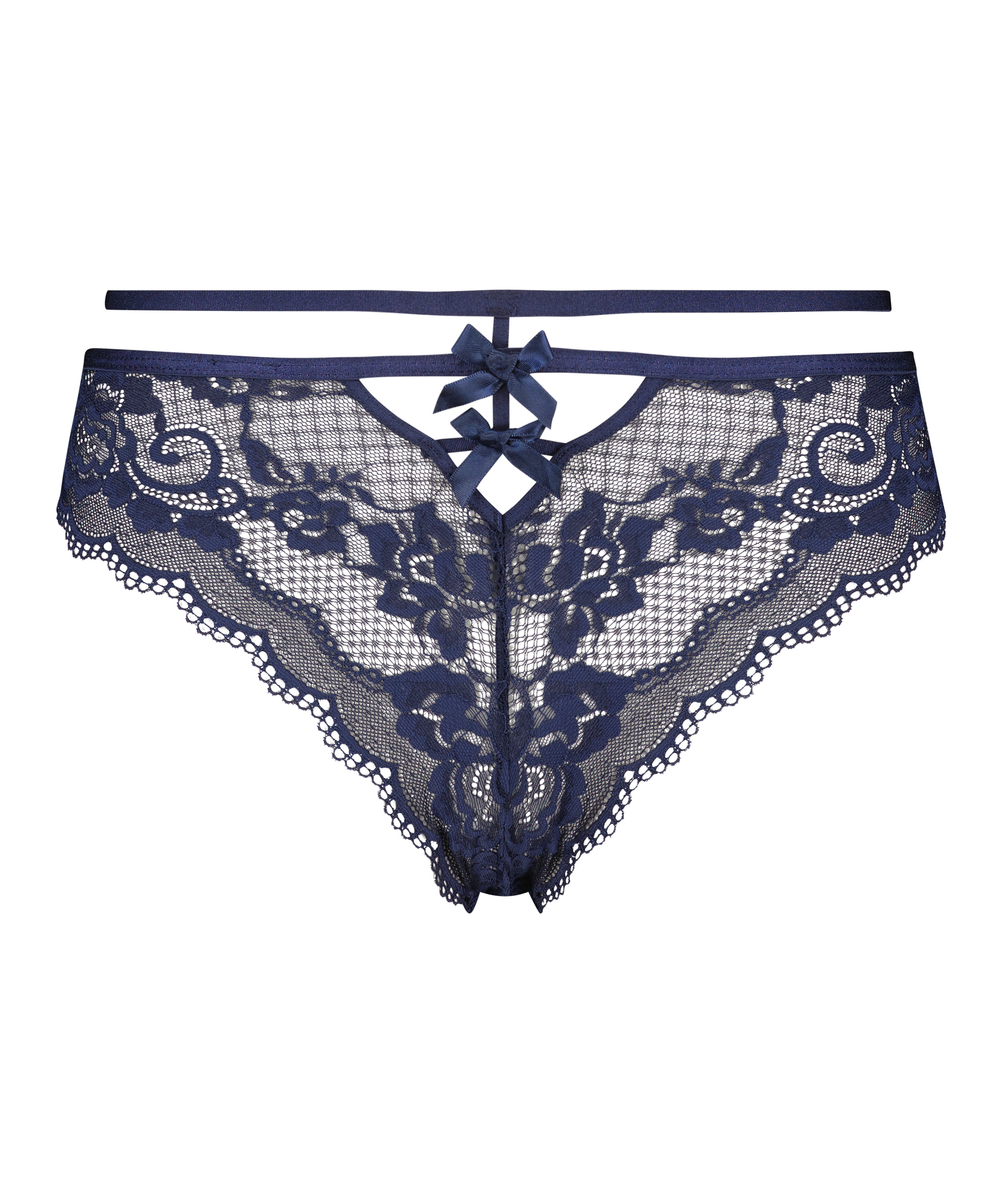 These lovely Brazilian knickers are a must-have! Made in stunning lace with strappy, cut-out detailing, plus cute bows on the back too. Combine with your favourite bra or bralette.