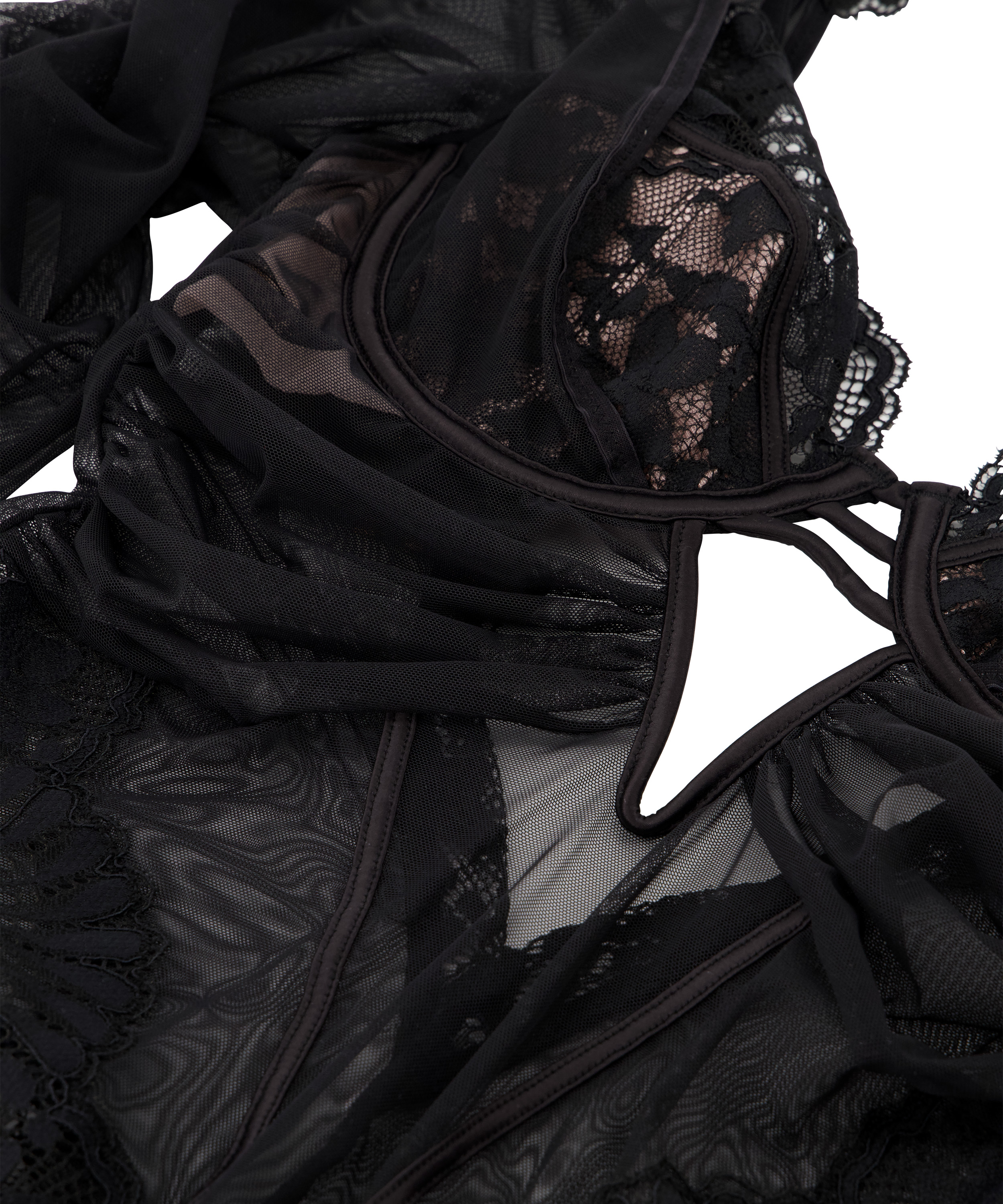 Perfectly versatile for day-to-day styling! The Antonia body is delicate and elegantly decorated with lace and mesh fabric. The long sleeves make it easy to wear down with a pair of jeans or style up with your favorite blazer. With the padded cups for extra support, you cannot go wrong with this body!