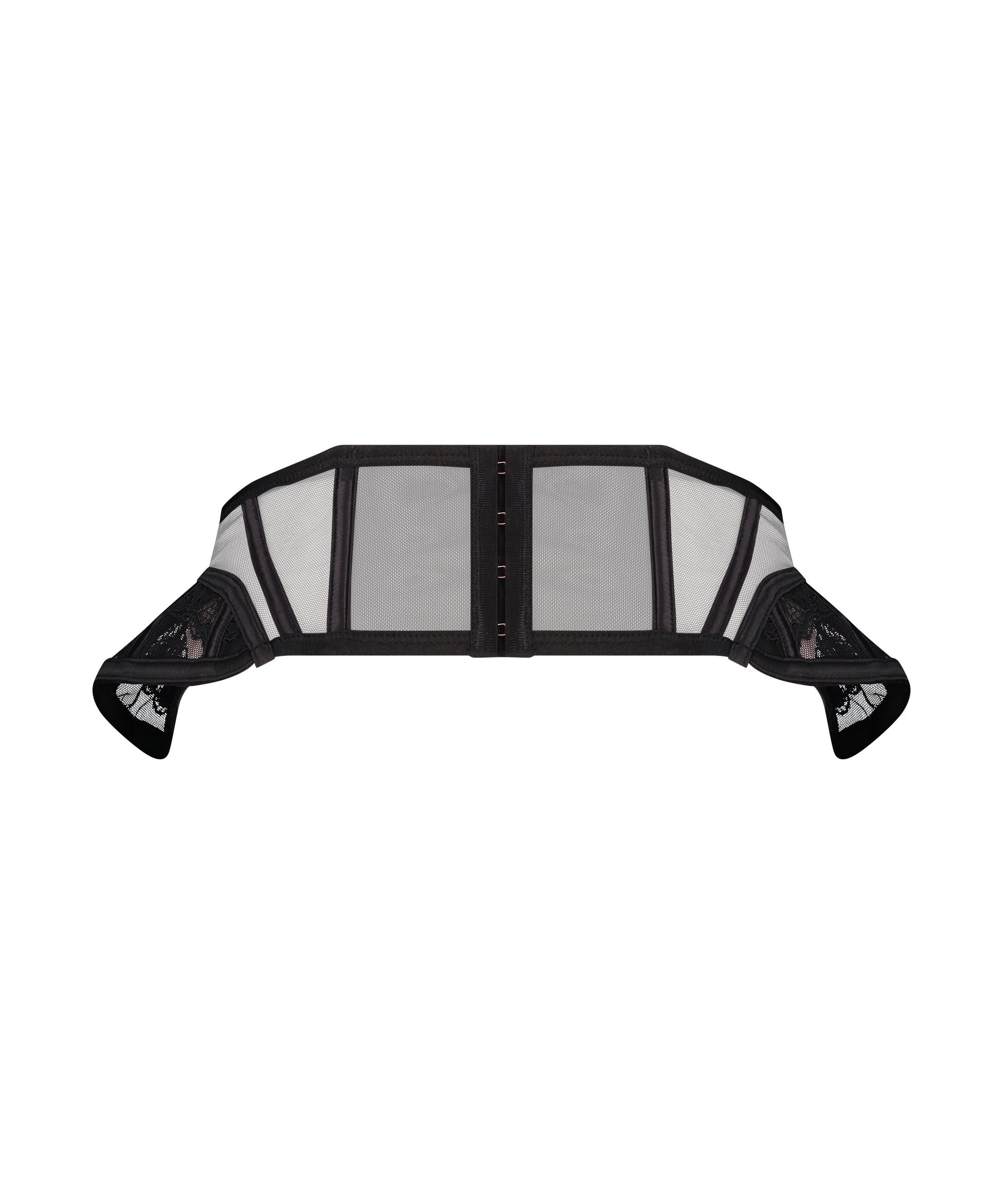 Complete your lingerie set with this waspie! With an all-over lace look, creating a delicate and sexy touch to your set. With front and back boning for a supportive fit.