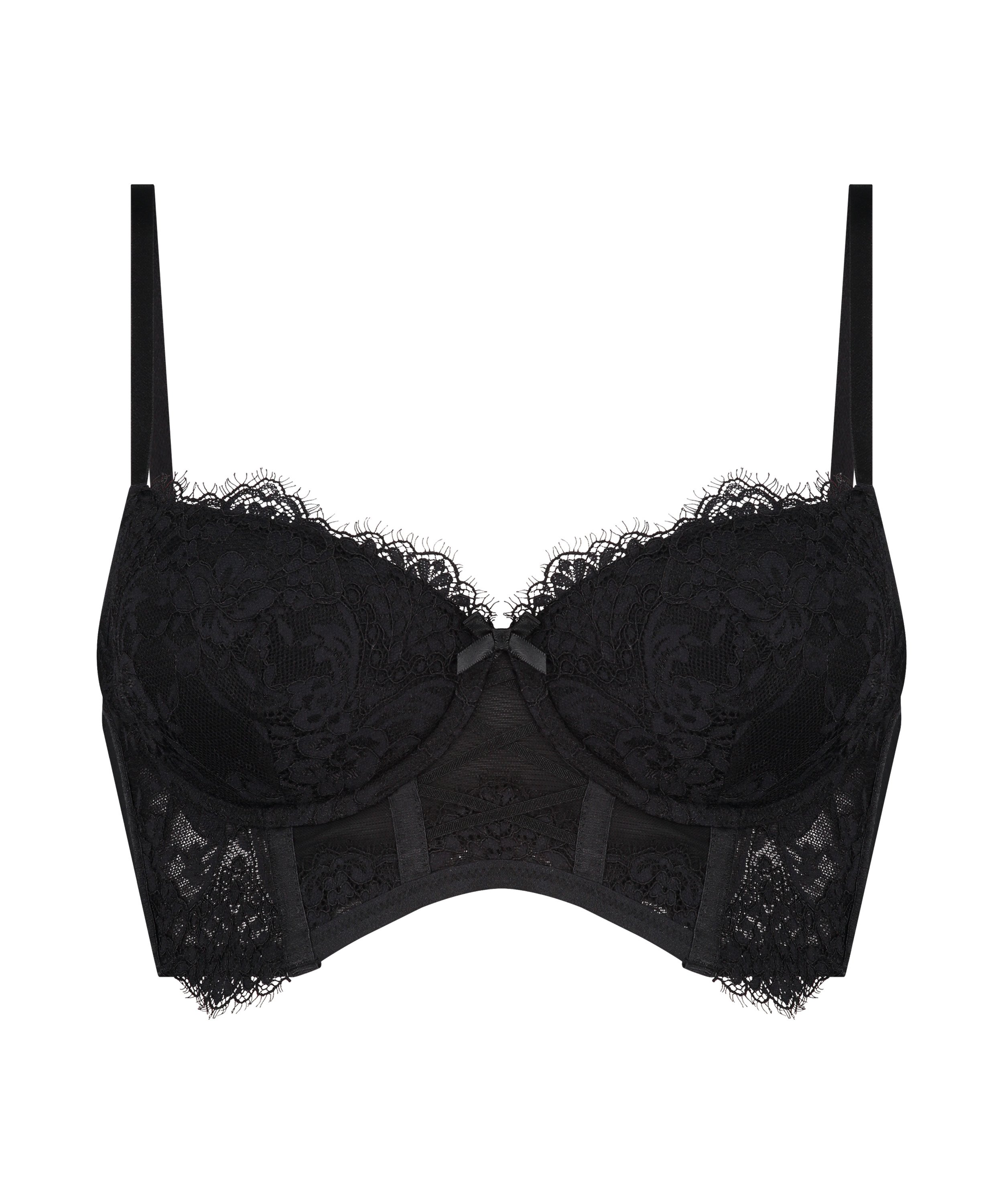 This bra looks great on you! It's a longline model and trimmed with lace. Combine with matching items for a complete look.