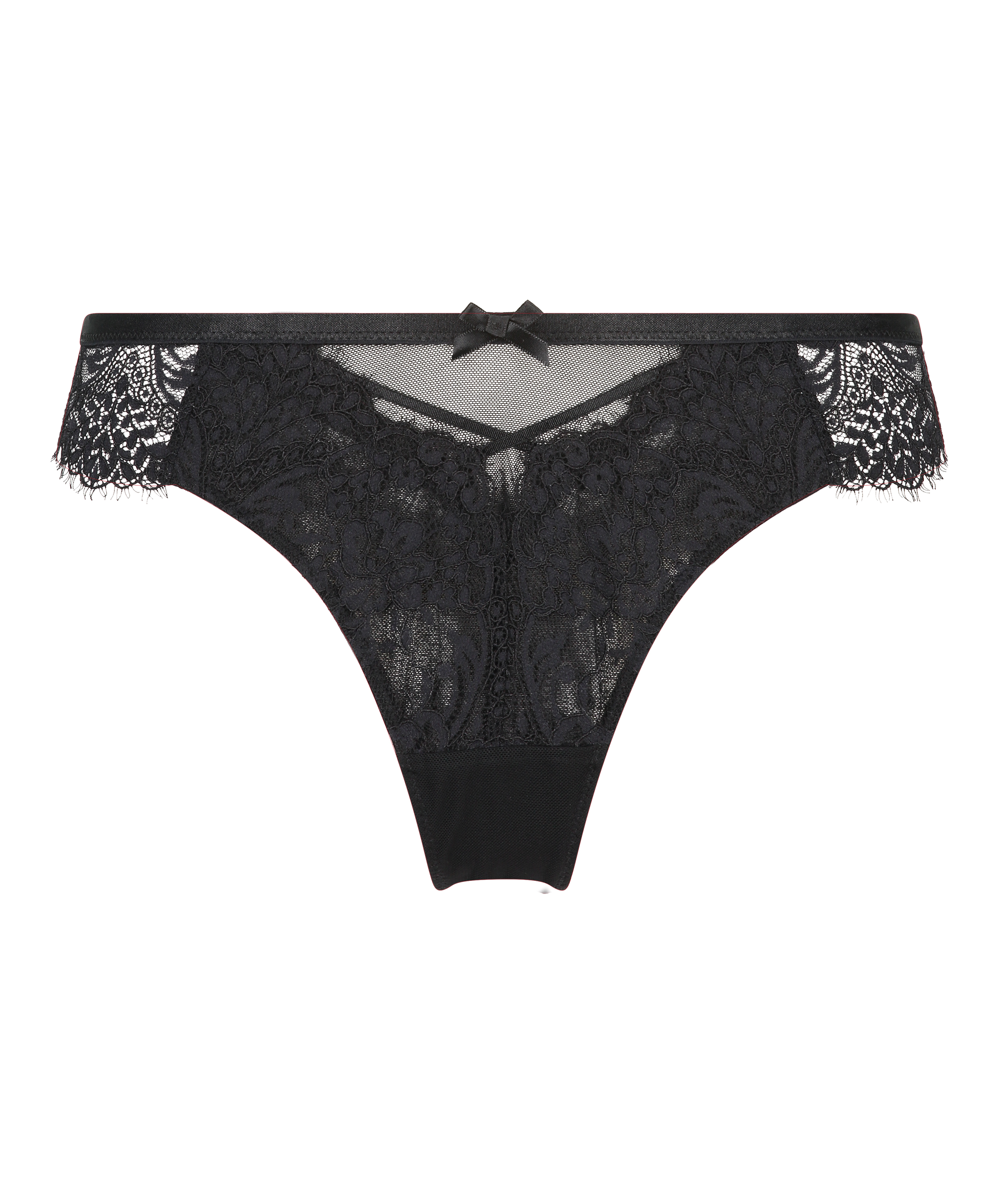 Complete your sexy look with this thong! The lace and mesh detail and the bow in front add the perfect finishing touch! Combine with matching items for a complete look.