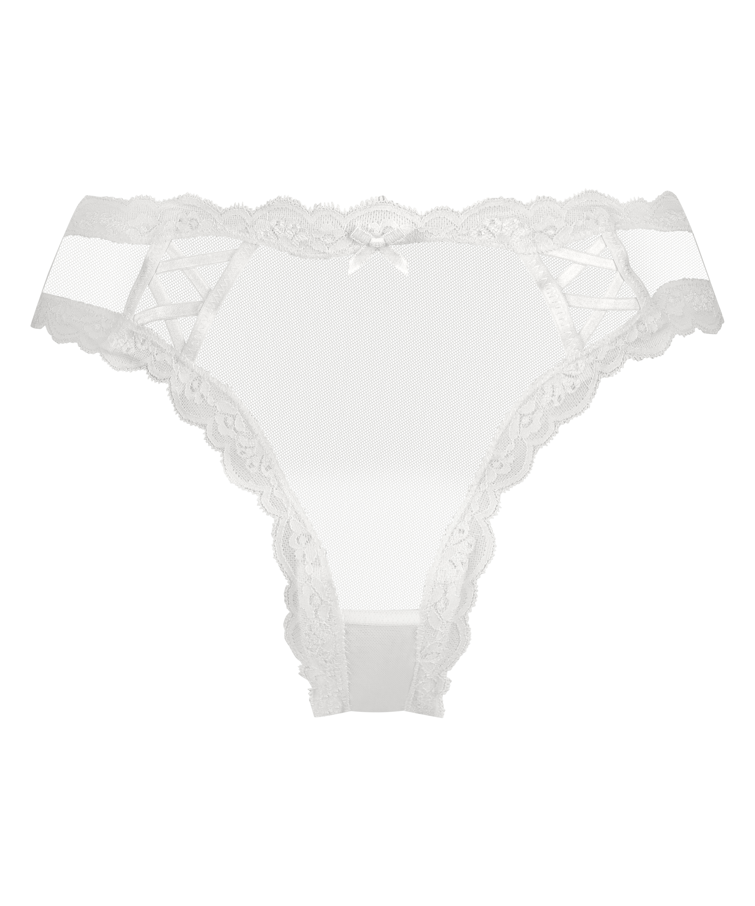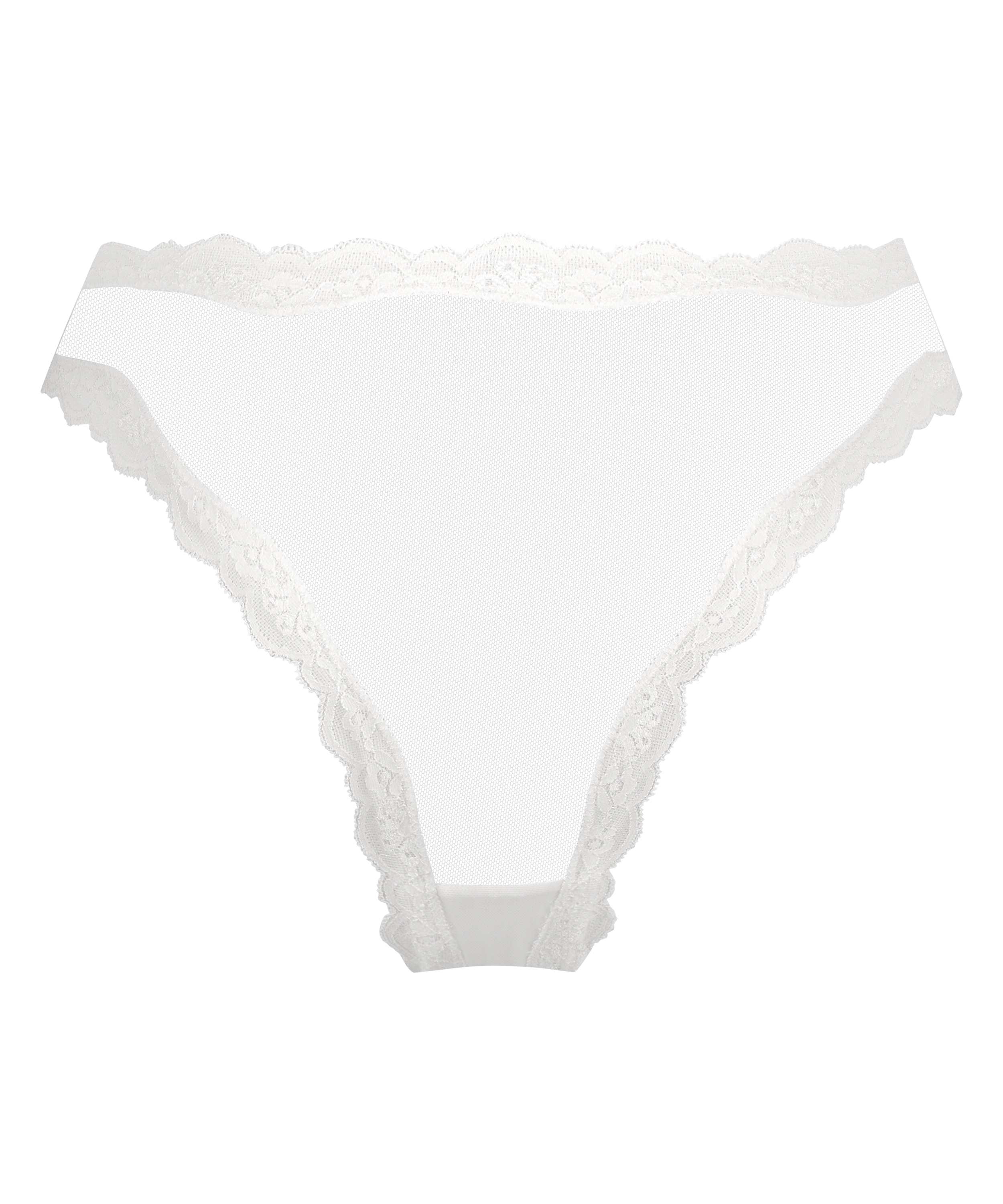 Add a touch of elegance to your lingerie collection with our Astra Brazilian, This design features lace edges that create a romantic look, while the mesh offers a modern vibe. Combine with your favorite bra for a complete look.