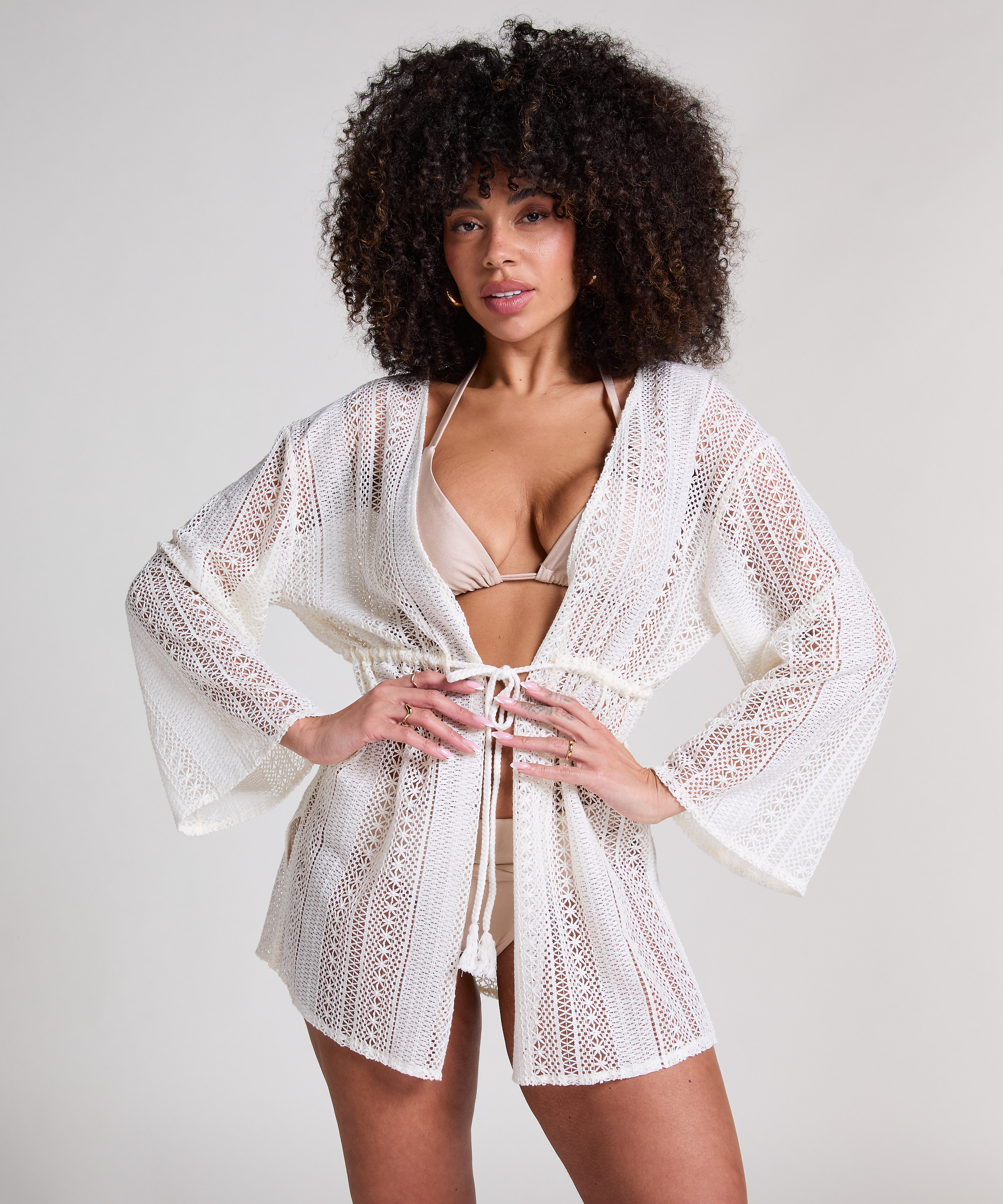 This beach accessory is a must-have this summer! Fully made with a crochet patter and a cord to tie around you waist. Wear it over your favourite bikini or swimsuit.
