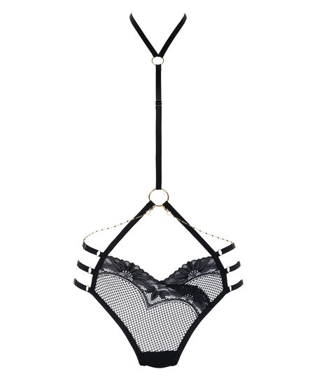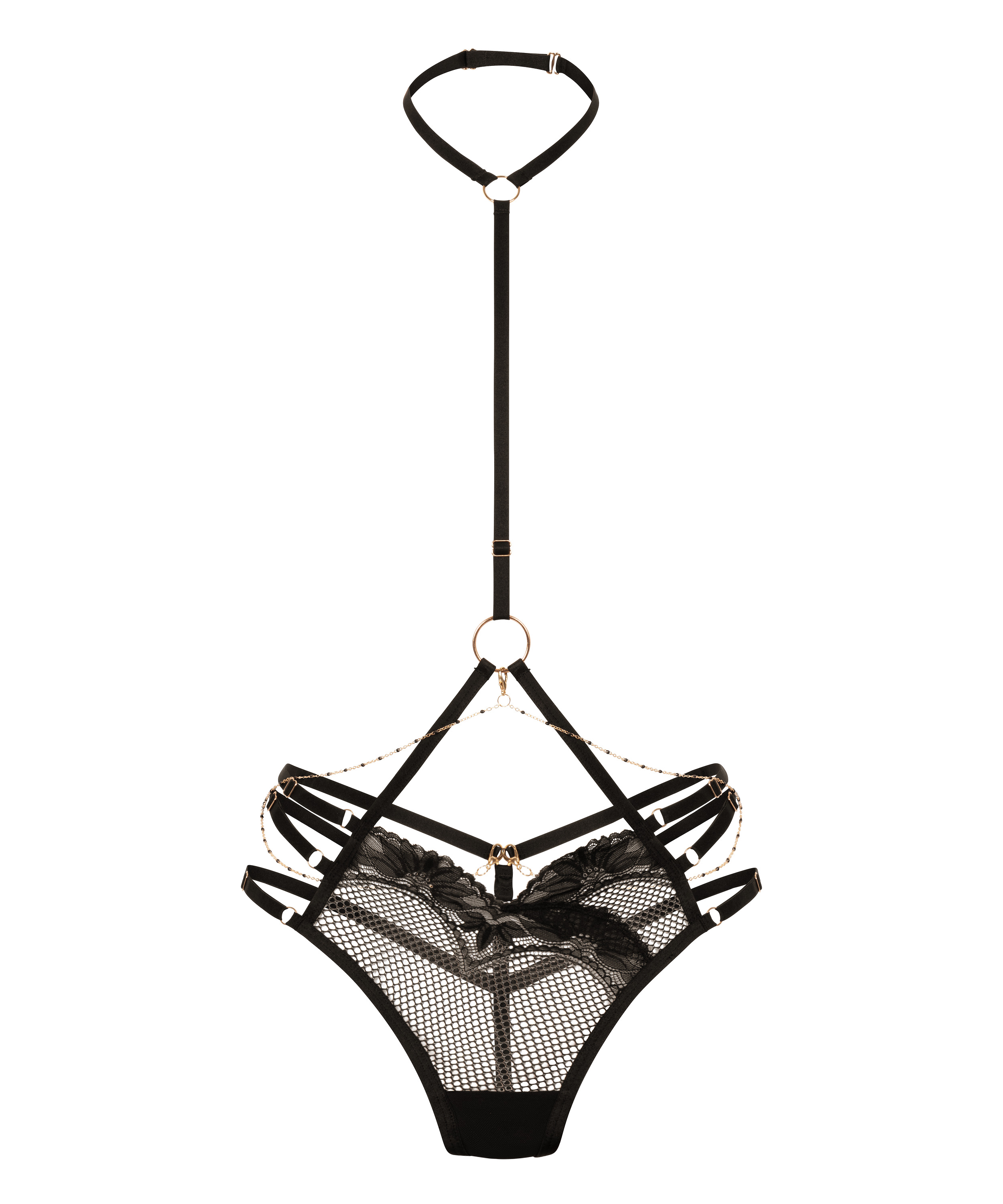 This thong brings out your deepest desires! With its beautiful lace and strappy detailing and its choker to wear around your neck. The detachable necklace makes this piece a true must-have!