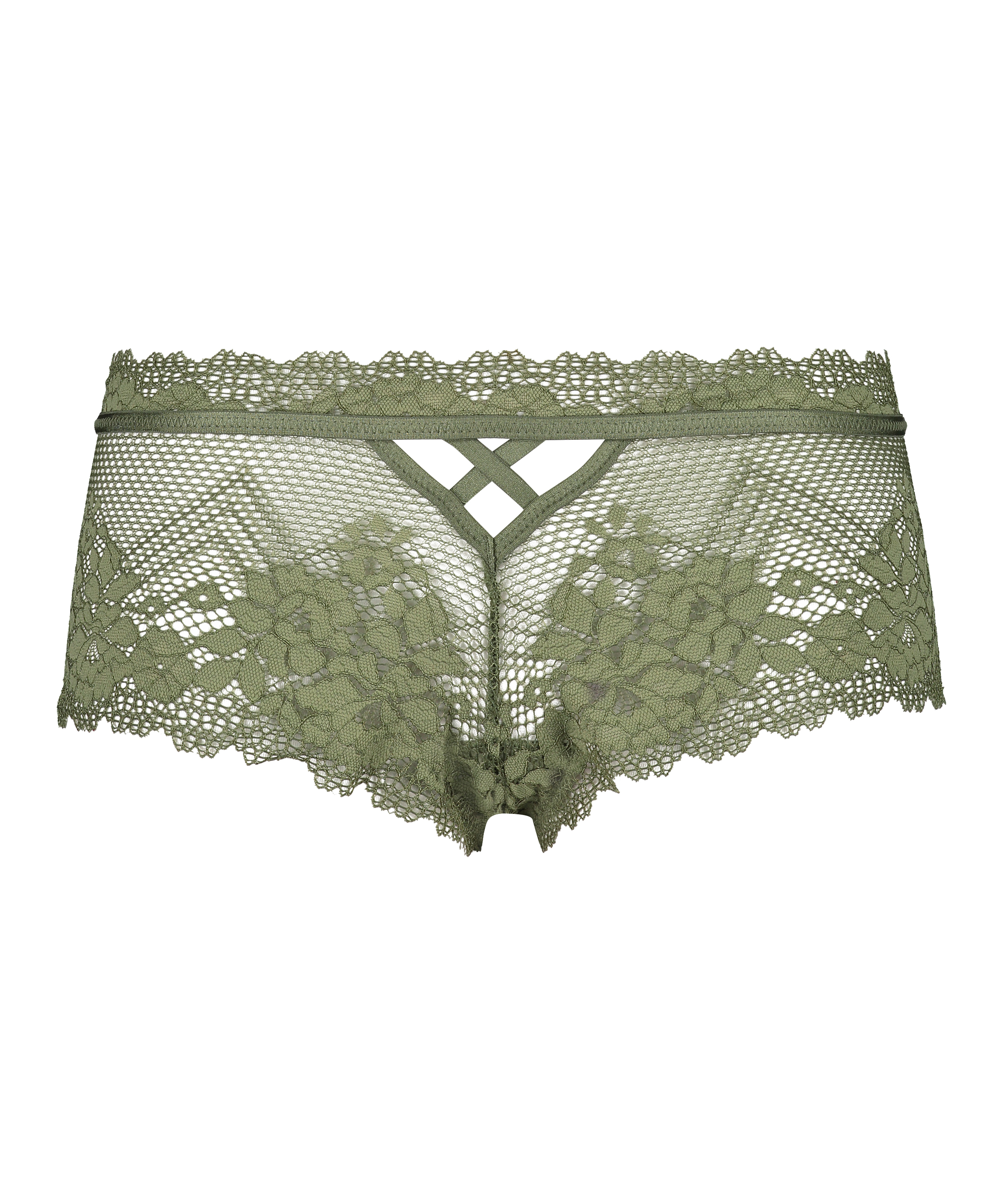 These boxers are a must-have in your lingerie collection! Made entirely of lace. With cut-out detailing on the front. Combine with the matching bra for a complete set!