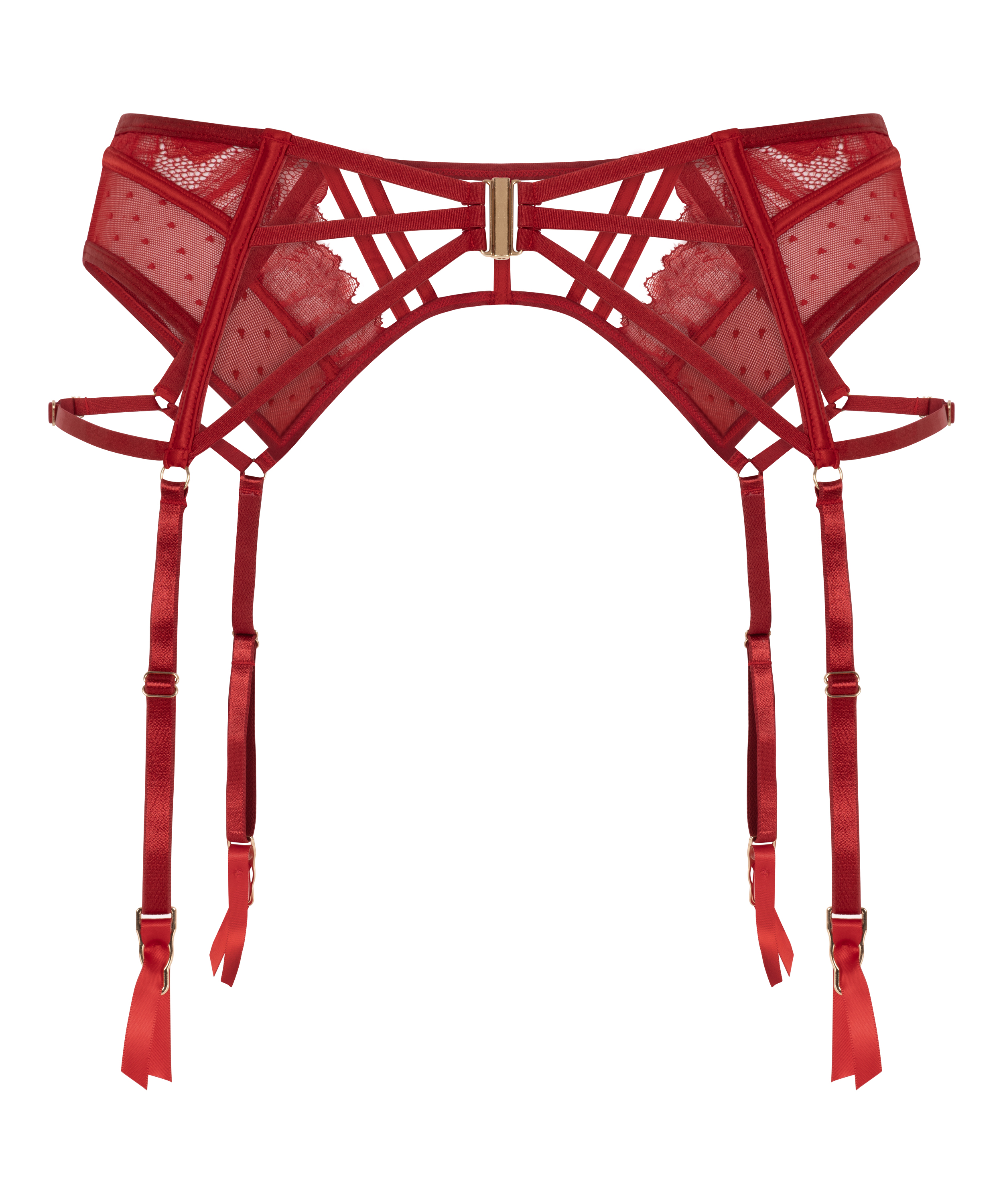 Suspenders add an extra sexy touch to your outfit. These suspenders feature strapping and lace. Wear with a nice pair of stockings. From our Private collection.