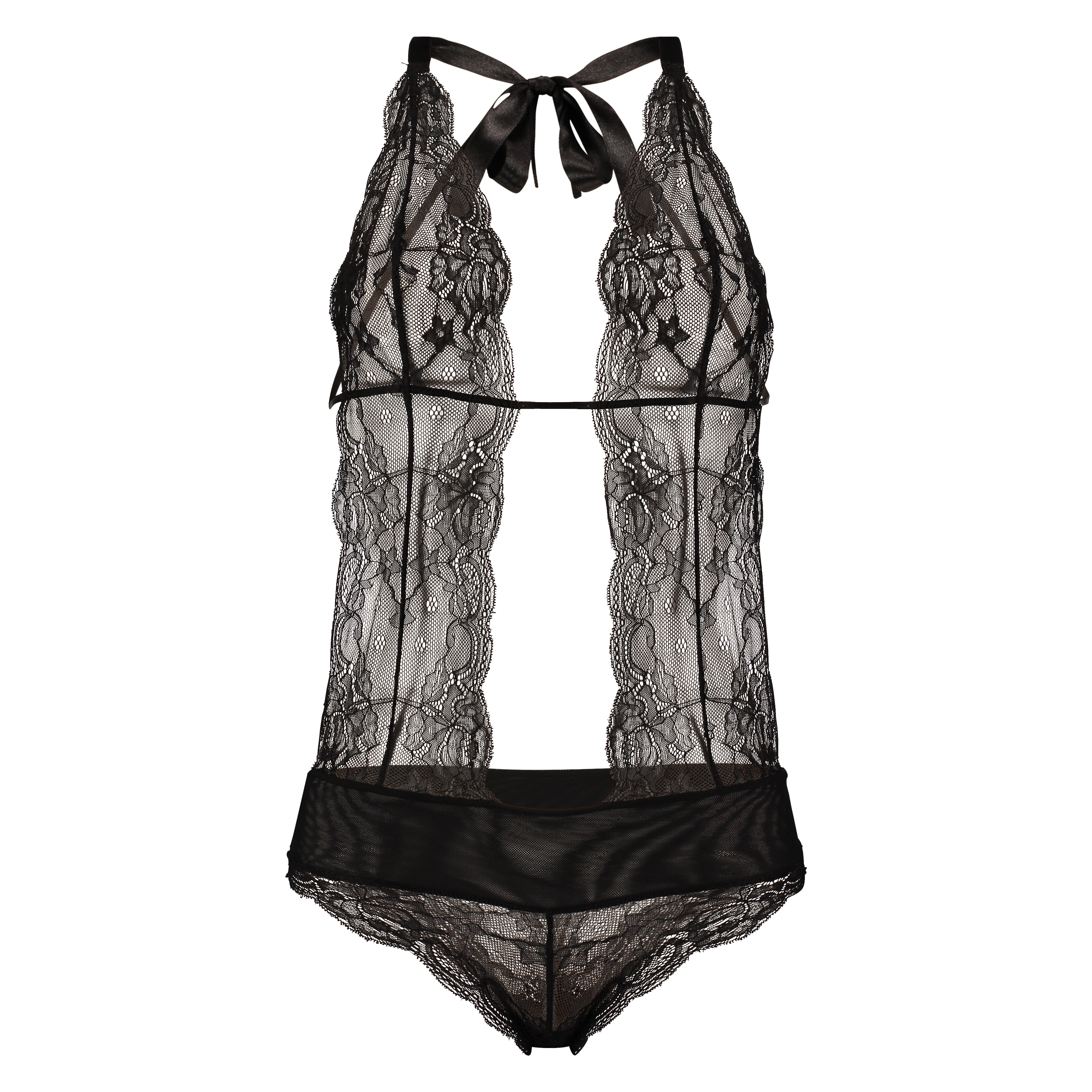 Make your special Valentine blush with this seductive body in semi-transparent floral lace. The body has an open back with tie closures on the neck and back. A sexy surprise for Valentine ’s Day.
