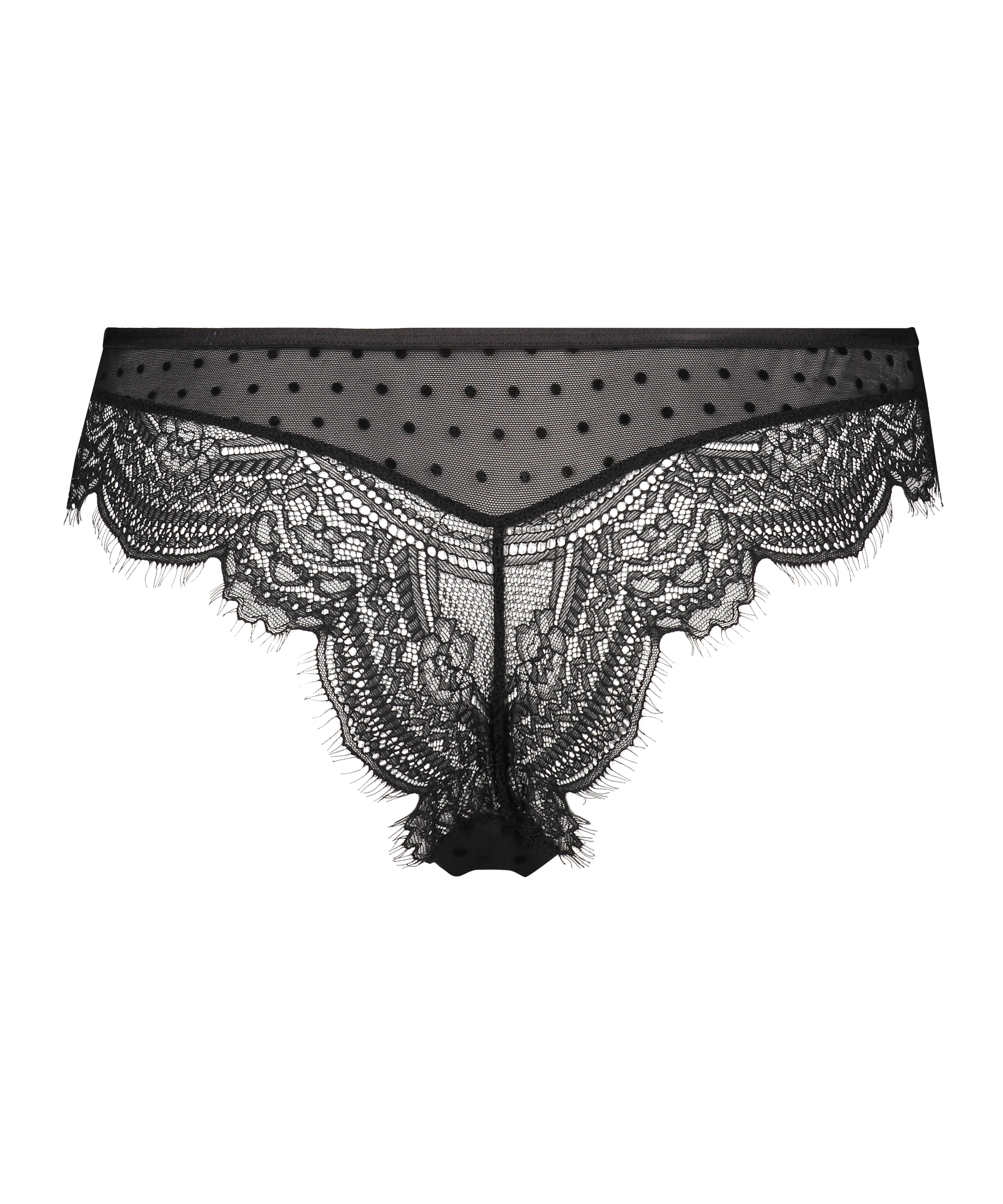 These brazilian knickers are a real must-have! The panties have pretty lace and cut-out details. There is also a pretty dot incorporated in the fabric. Combine with a matching bra or bralette.