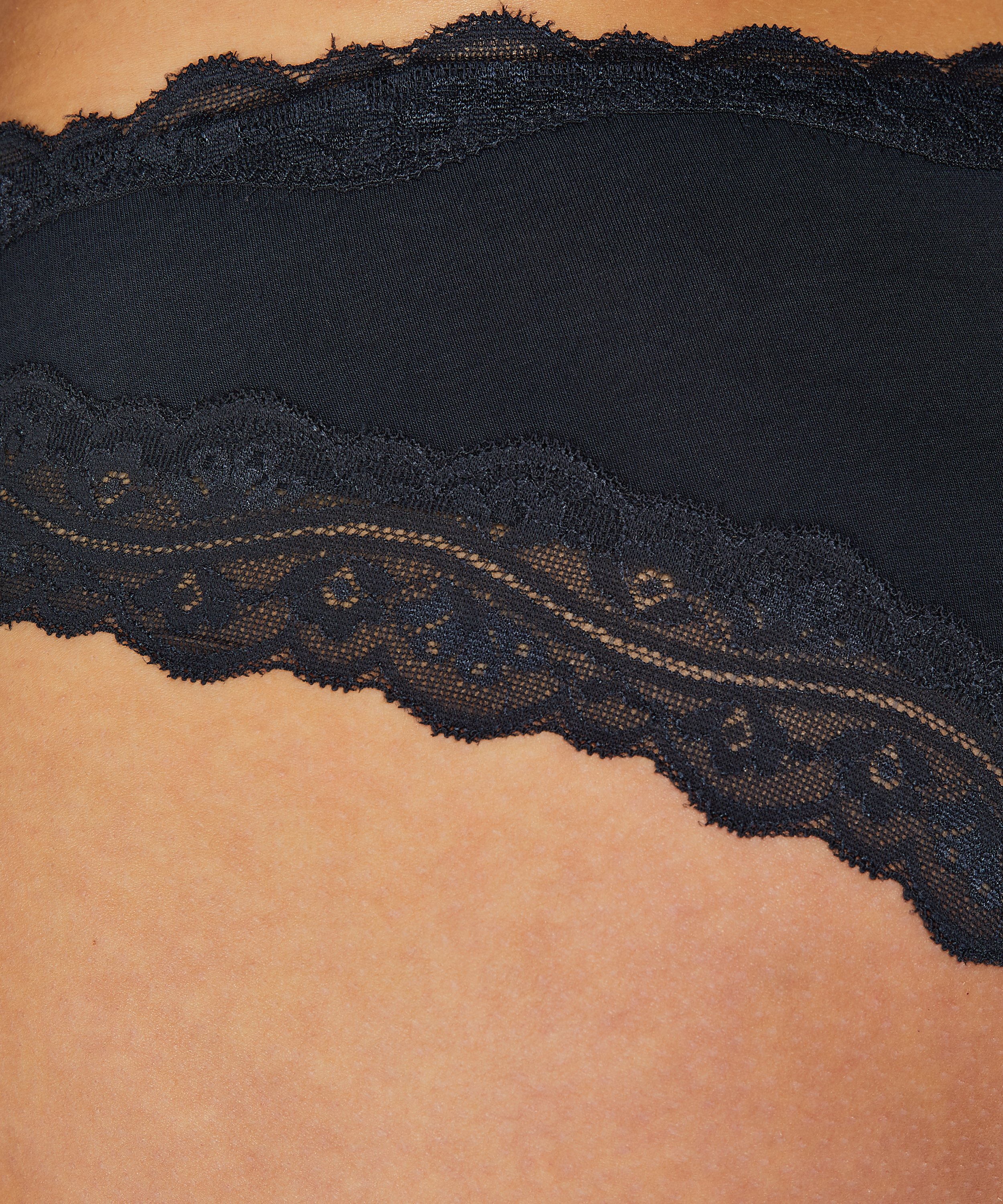 These basic Brazilian knickers are an ideal addition to your daily wardrobe. They have a lace border and a small bow.