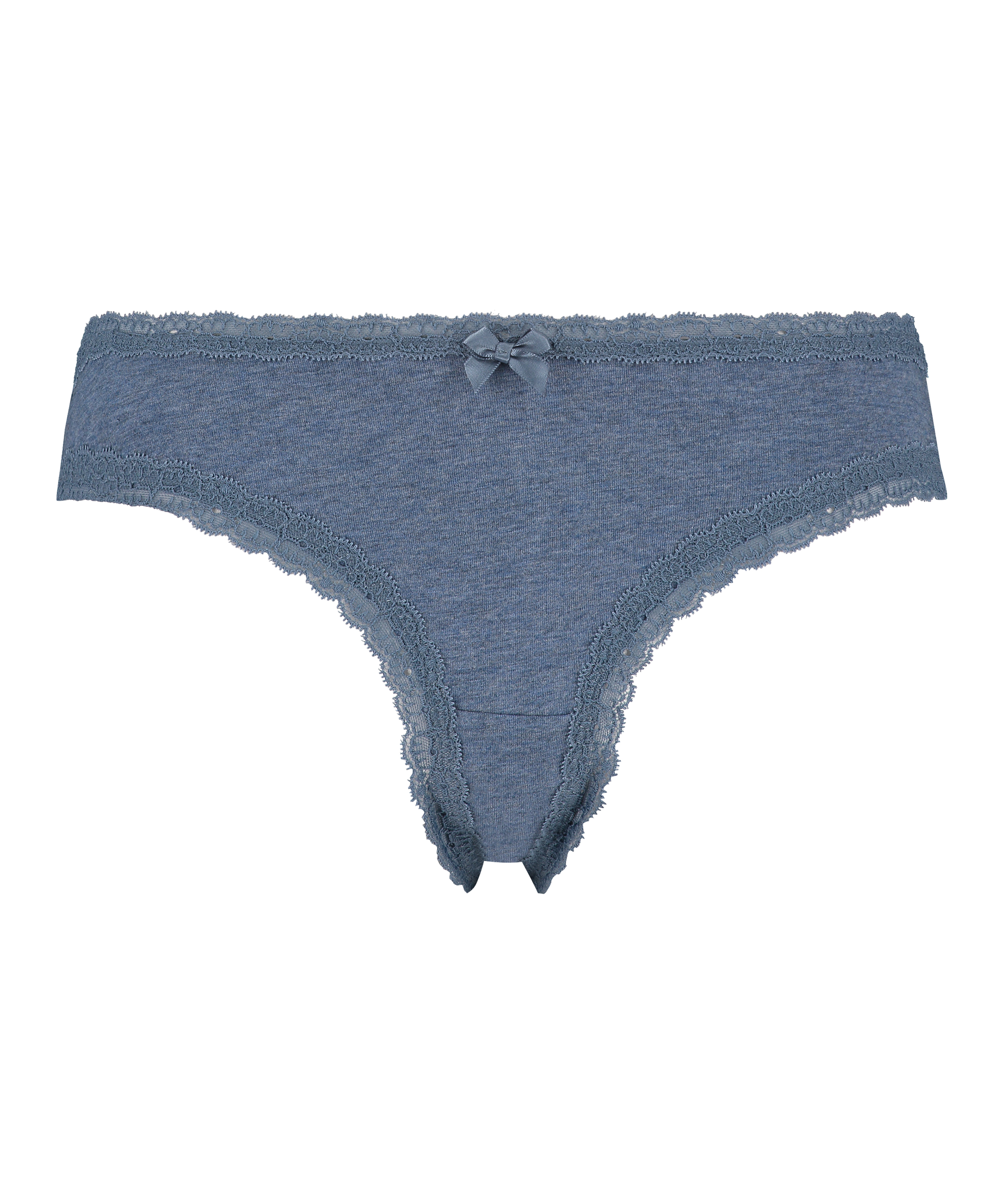 These basic Brazilian knickers are an ideal addition to your daily wardrobe. They have a lace border and a small bow.