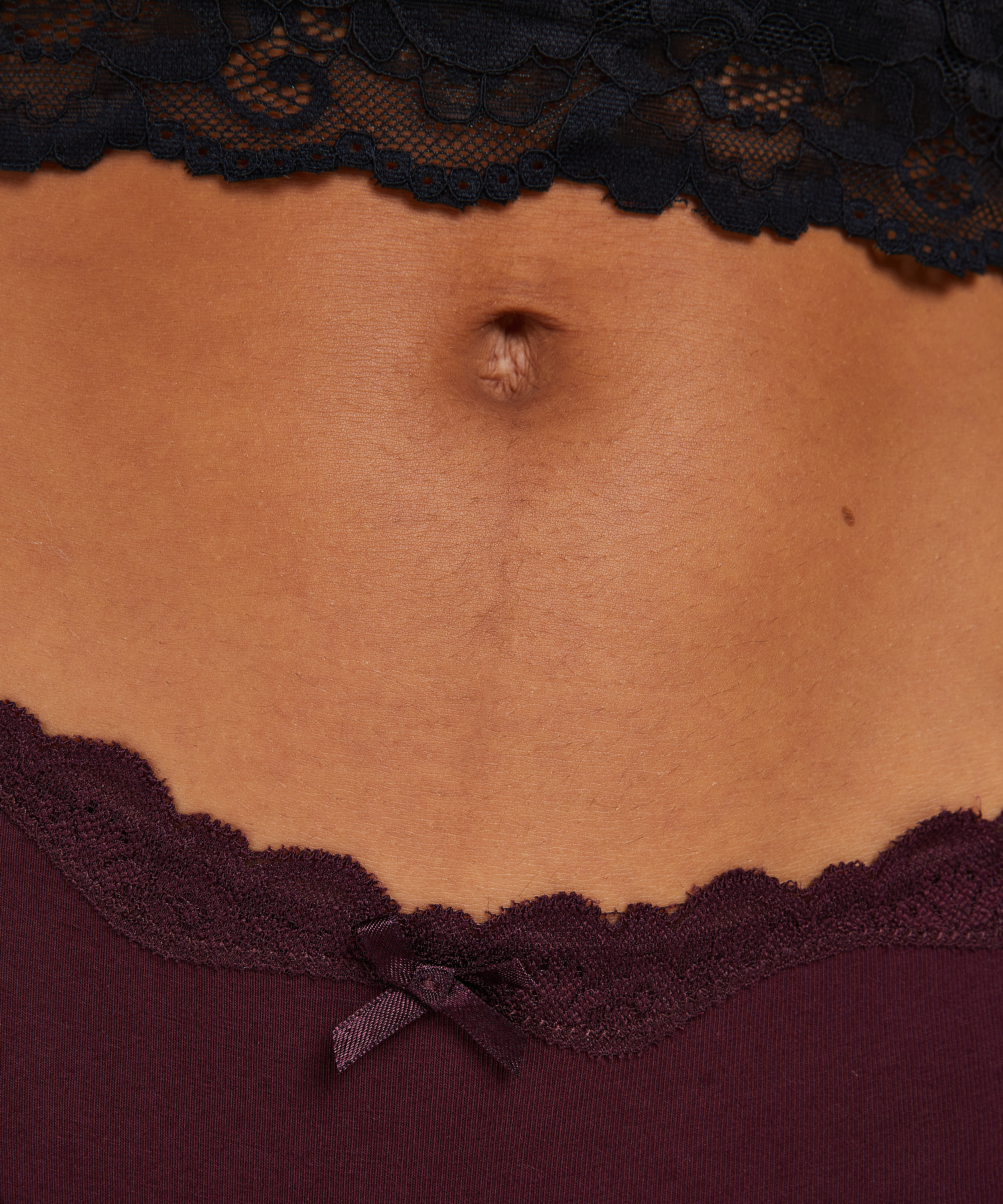 These basic Brazilian knickers are an ideal addition to your daily wardrobe. They have a lace border and a small bow.