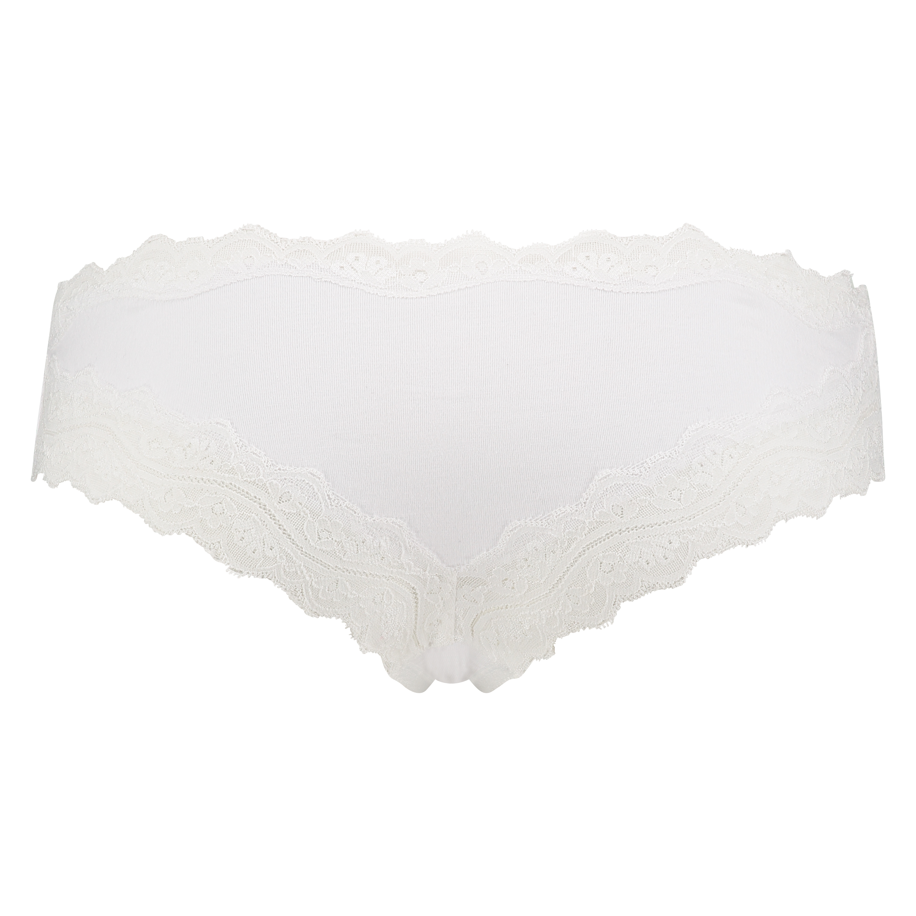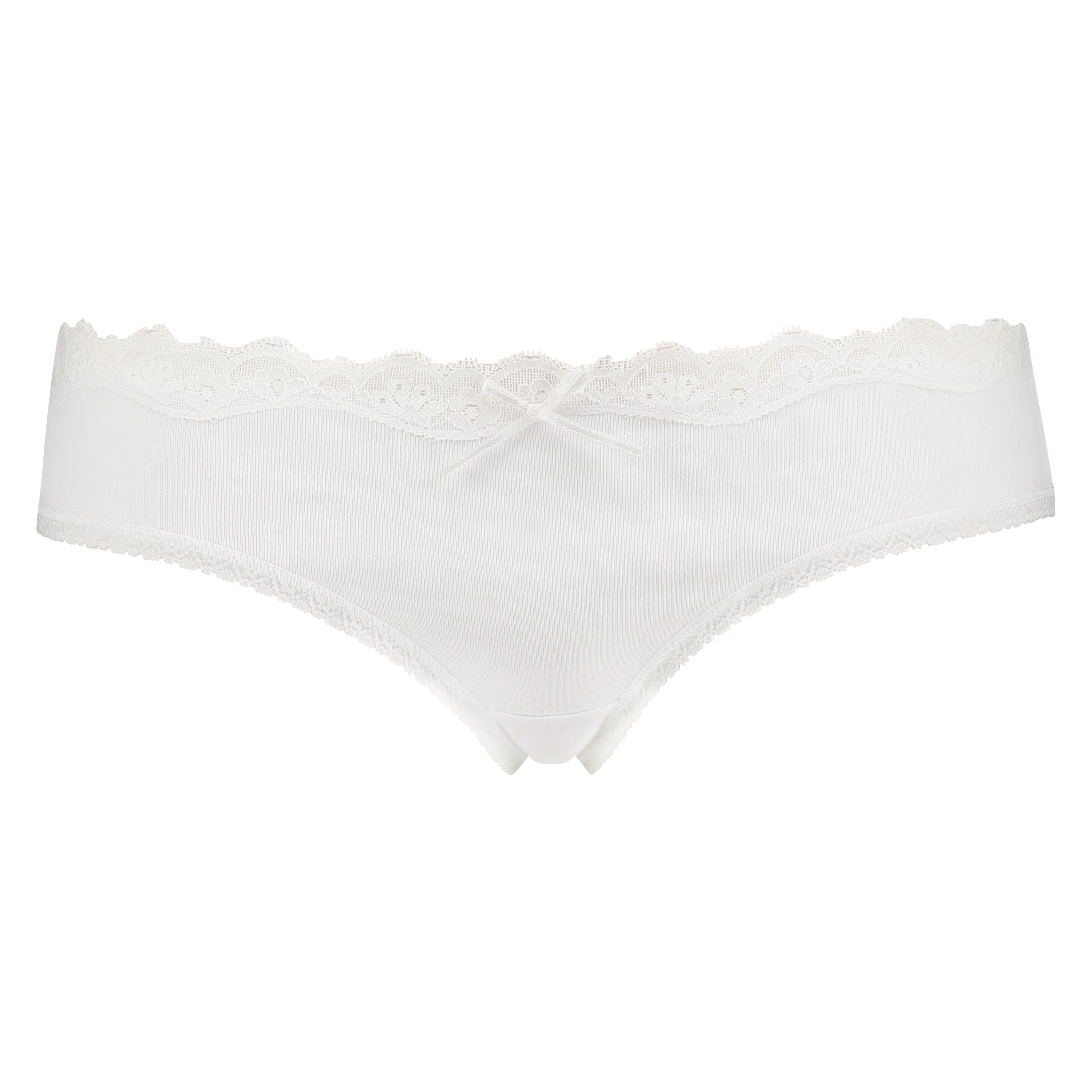 These basic Brazilian knickers are an ideal addition to your daily wardrobe. They have a lace border and a small bow.