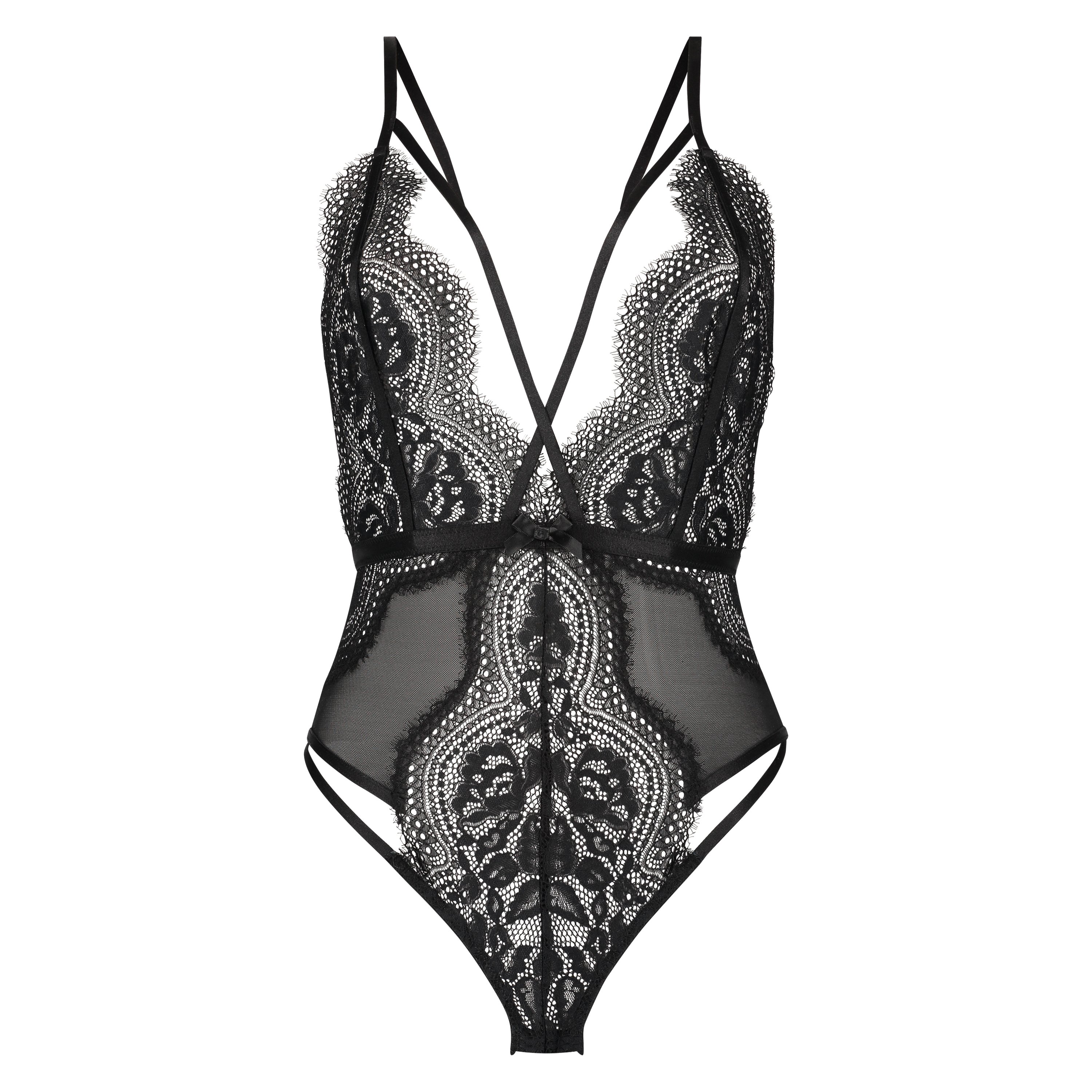 This body is finished with a mix of mesh and lace, super sexy! The strappy details and bow complete the body!