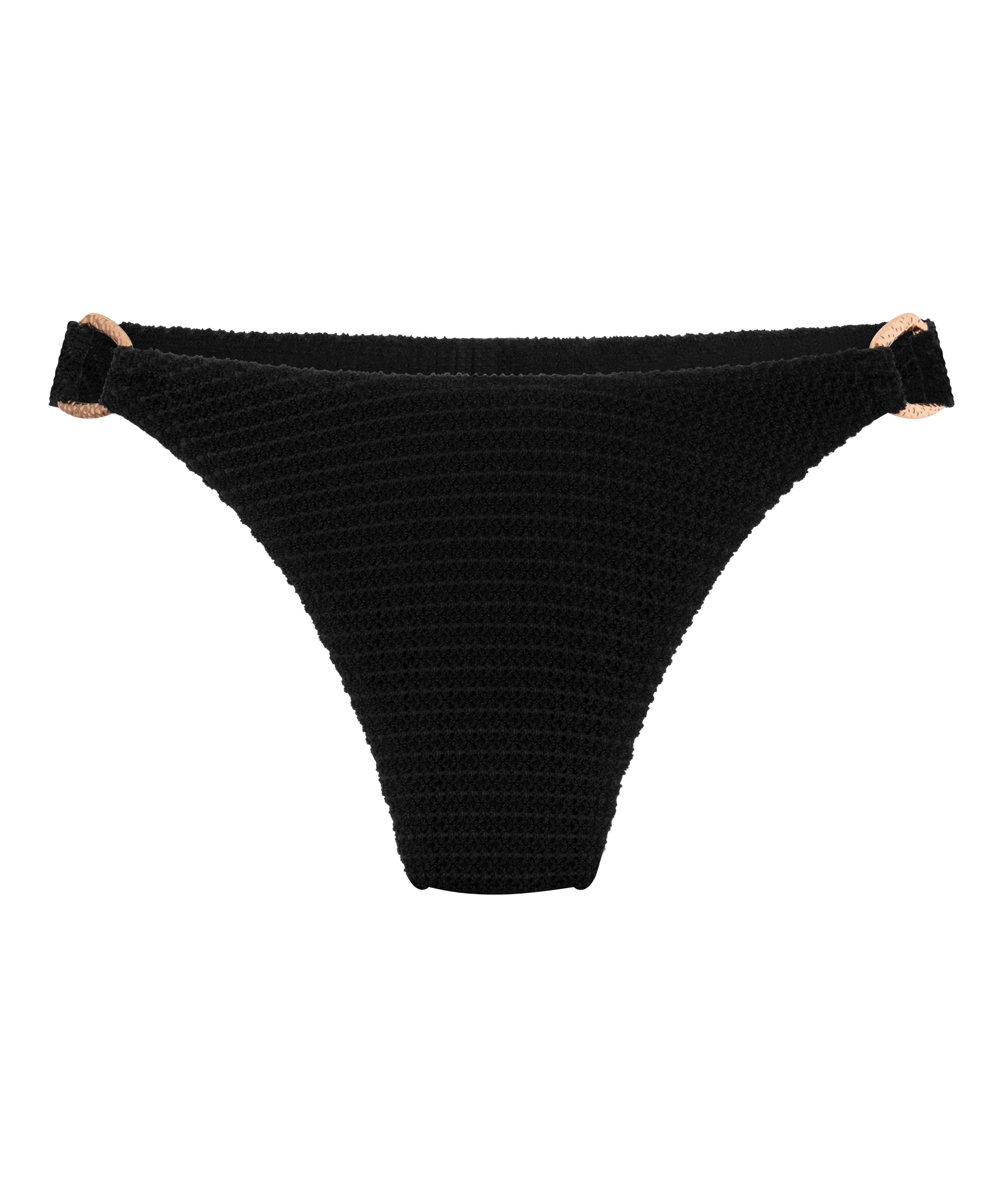 Make a statement at the beach with this high-leg bikini bottom. Designed to elongate your legs and flatter your silhouette. Featuting gold details on both sides, this piece adds a touch of luxury to your swimwear collection.