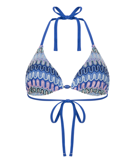 Trun heads at the beach with this bikini top. Designed for a timeless look, this top offers light support and adjusable tie closures for a customizable fit. The triangle cups create a natural shap, while the studs add a stylish touch.Our triangles come fully adjustable with halter tie neck and tie back, to suit your choice of cup coverage. However, if you want fuller coverage, try a size up.