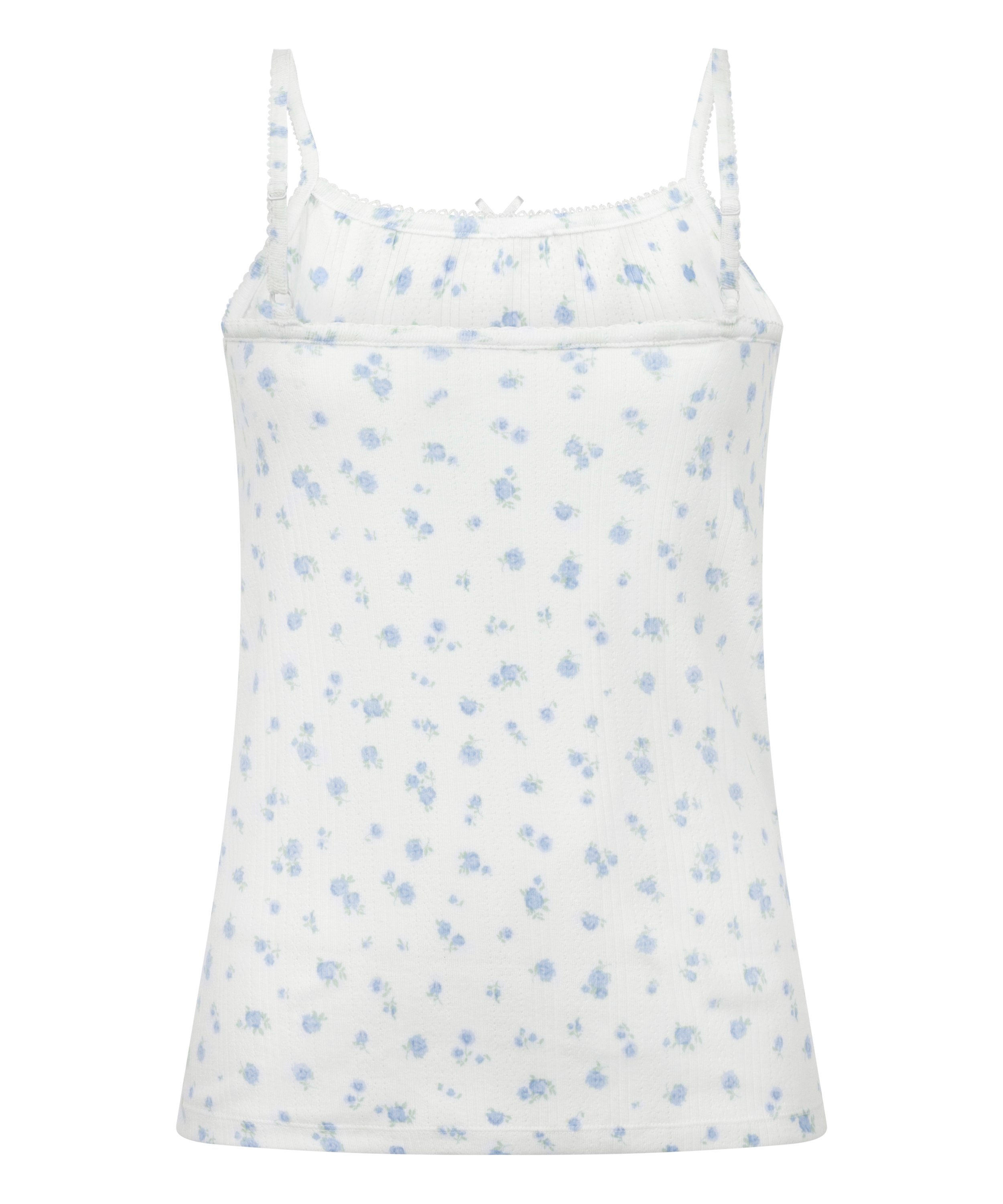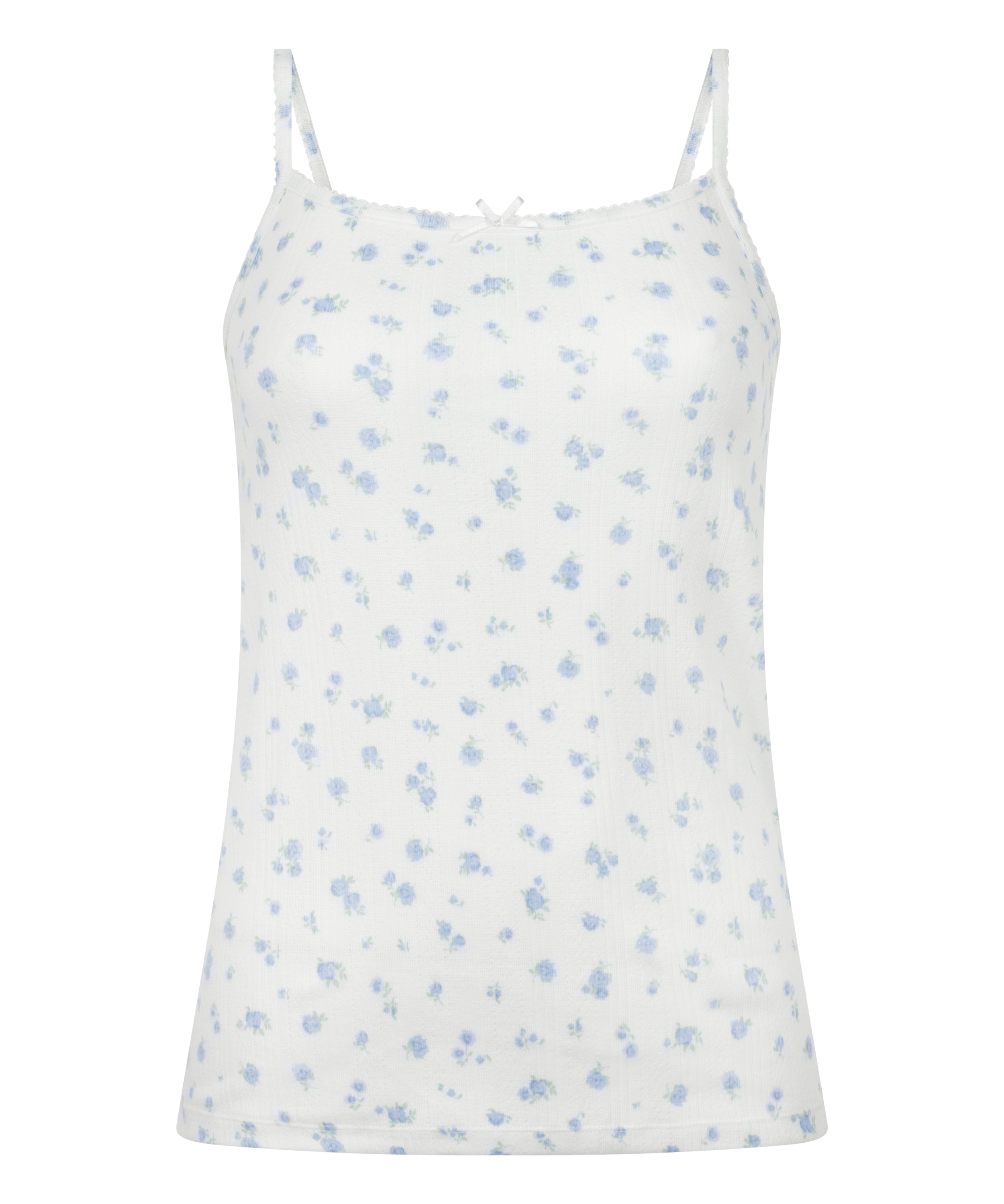 Soft, sweet and effortlessly, our Pointelle cami is a cozy essential. Made from pointelle fabric, it features a subtle textured pattern and a bow at the center adds a feminine touch. Combine with the matching shorts for a complete look.