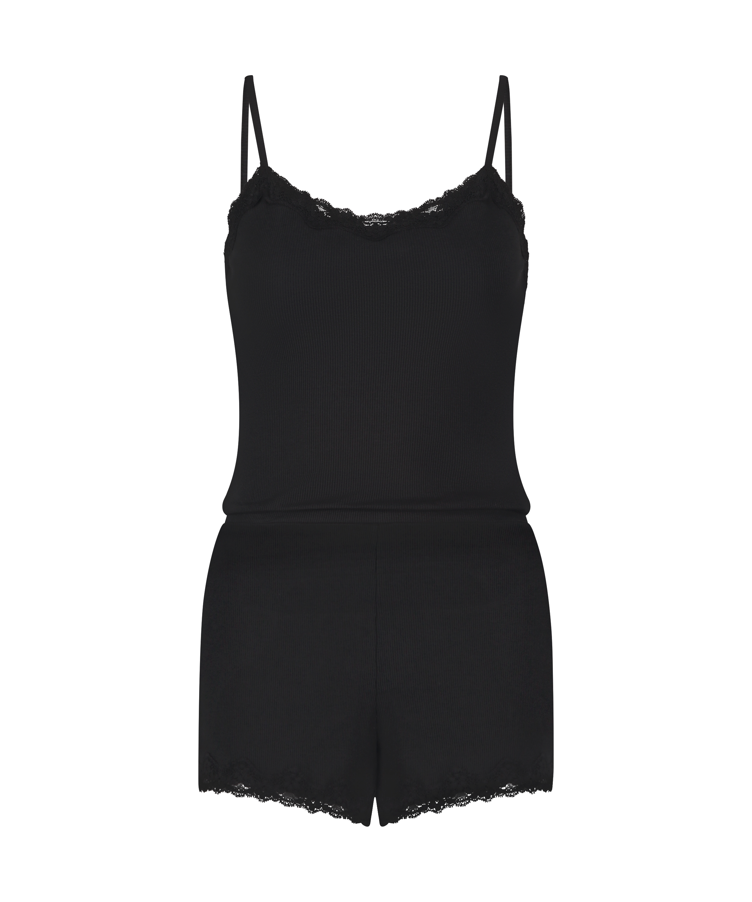 You'll certainly sleep well in this comfortable pyjama set! It is finished with pretty lace details. Combine with a nice kimono for a super-comfortable outfit!