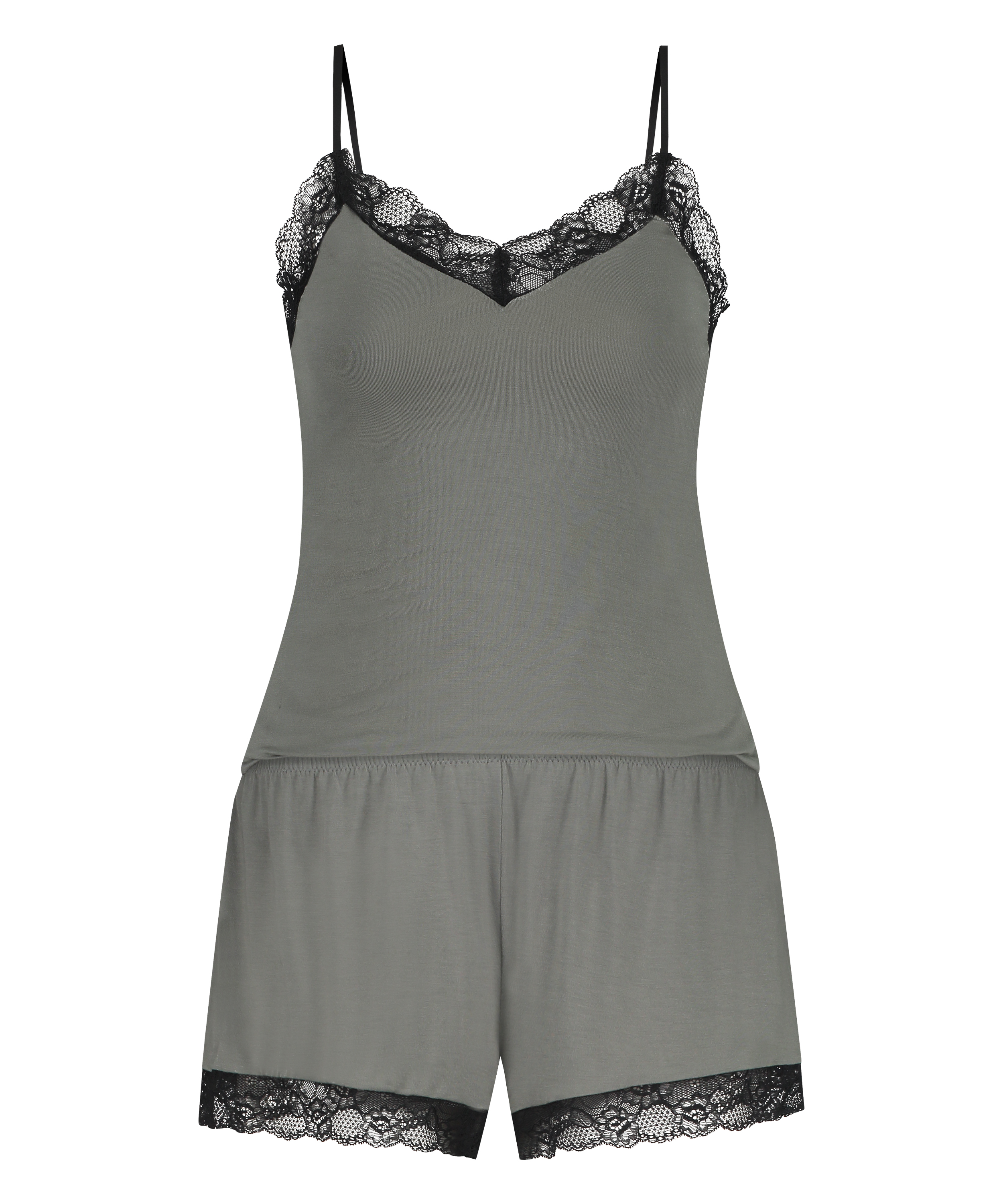 You'll certainly sleep well in this comfortable pyjama set! It is finished with pretty lace details. Combine with a nice kimono for a super-comfortable outfit!