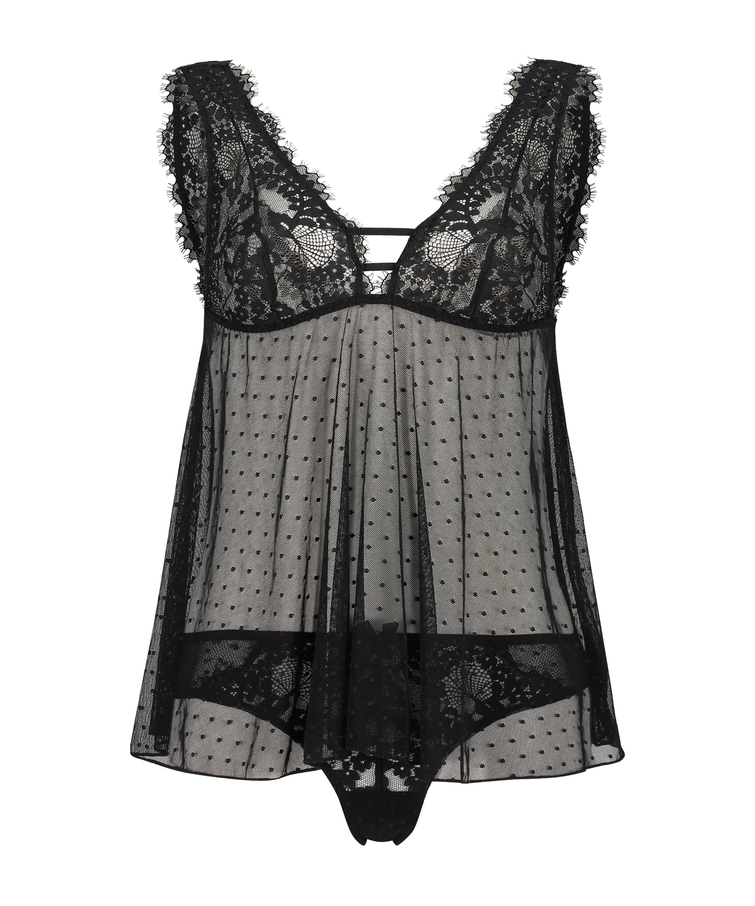 Looking for a cami-set that is both elegant and comfortable? This is the ideal choice! The top has a v-neck and lace details. The knickers are made of mesh with a motif.