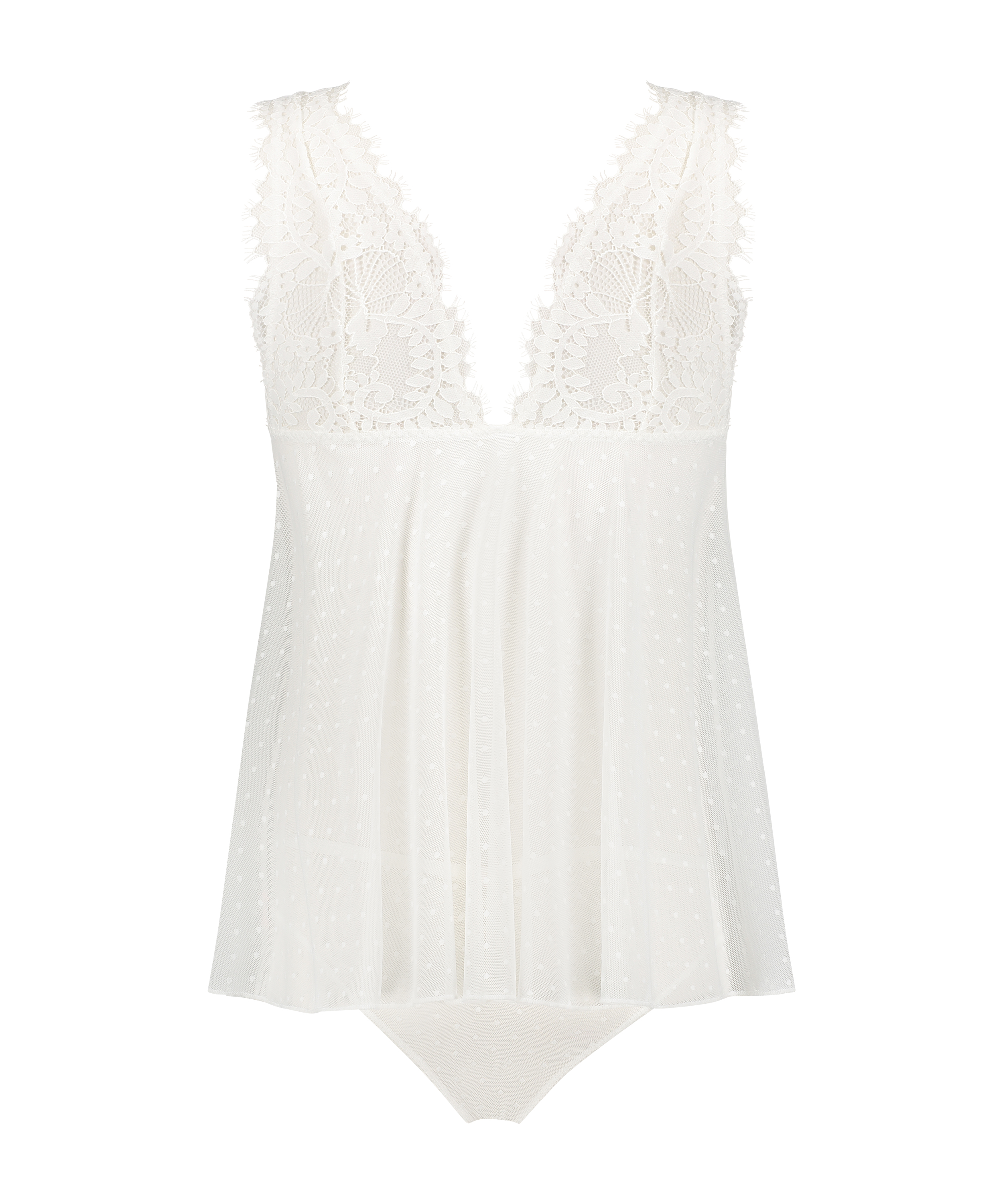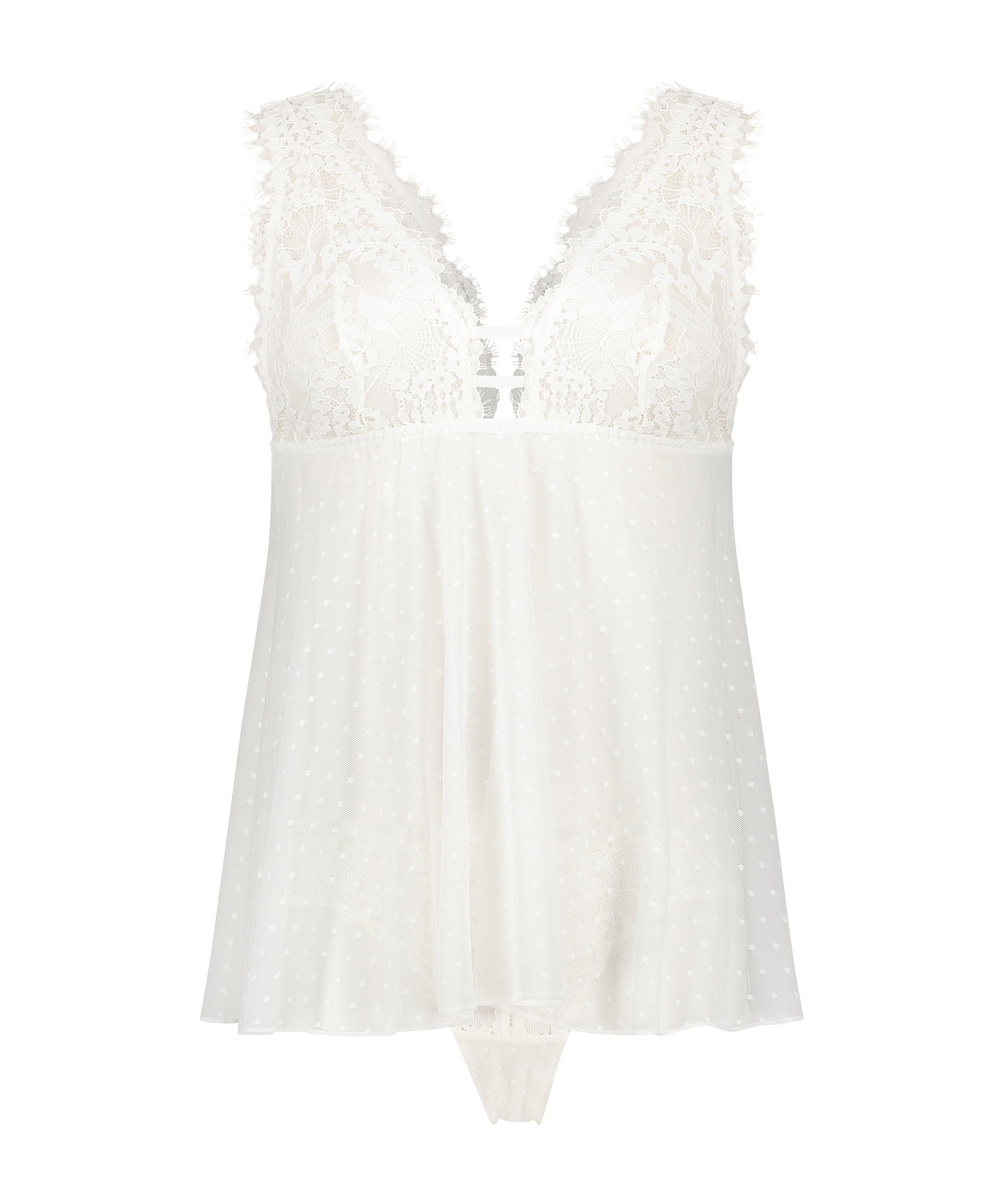 Looking for a cami-set that is both elegant and comfortable? This is the ideal choice! The top has a v-neck and lace details. The knickers are made of mesh with a motif.