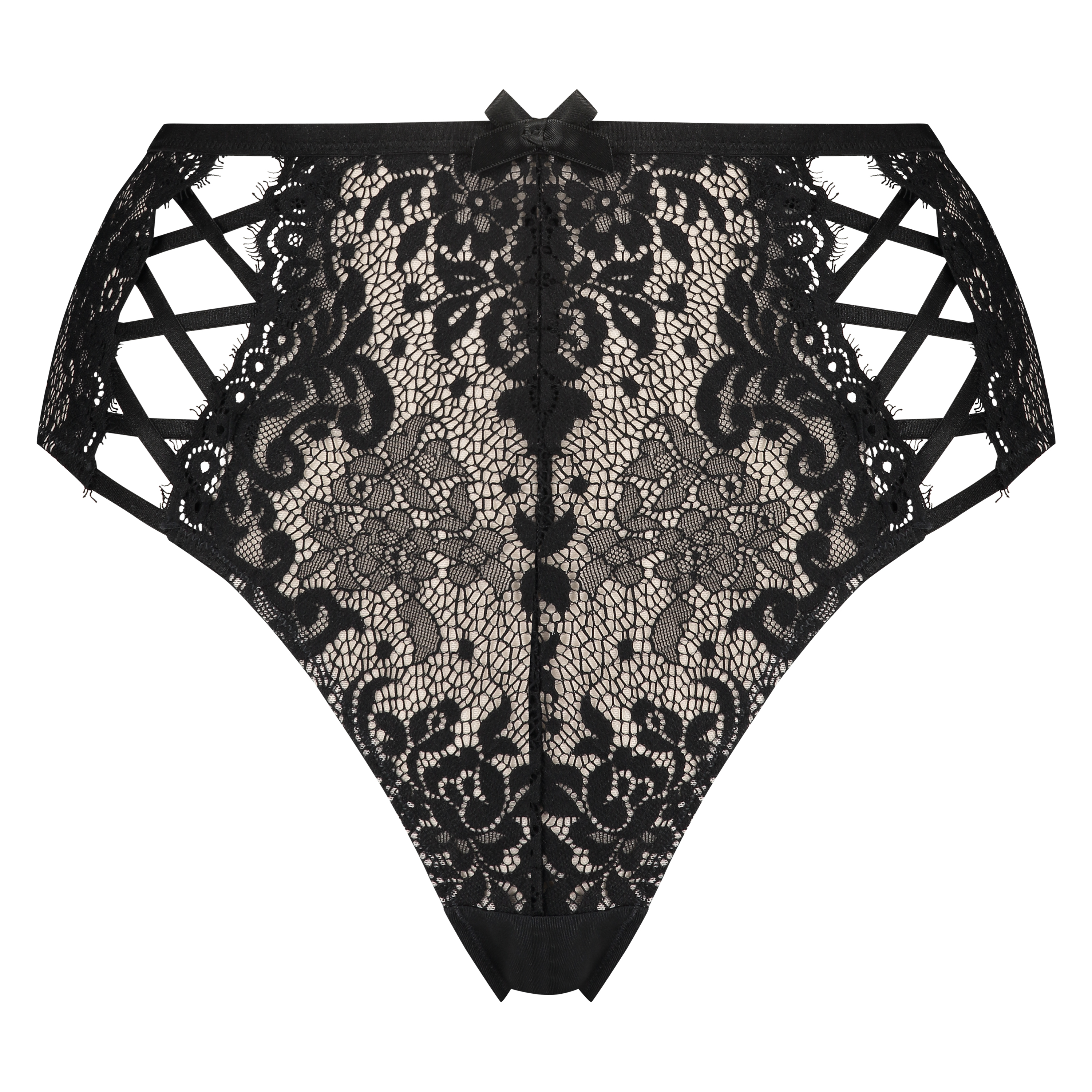 This high Brazilian is guaranteed to look great on you! The front is completely made of lace. The back is partly made of micro fabric and mesh. There is a sexy lace-up detail on the side. Combine it with the matching bra for a complete set.