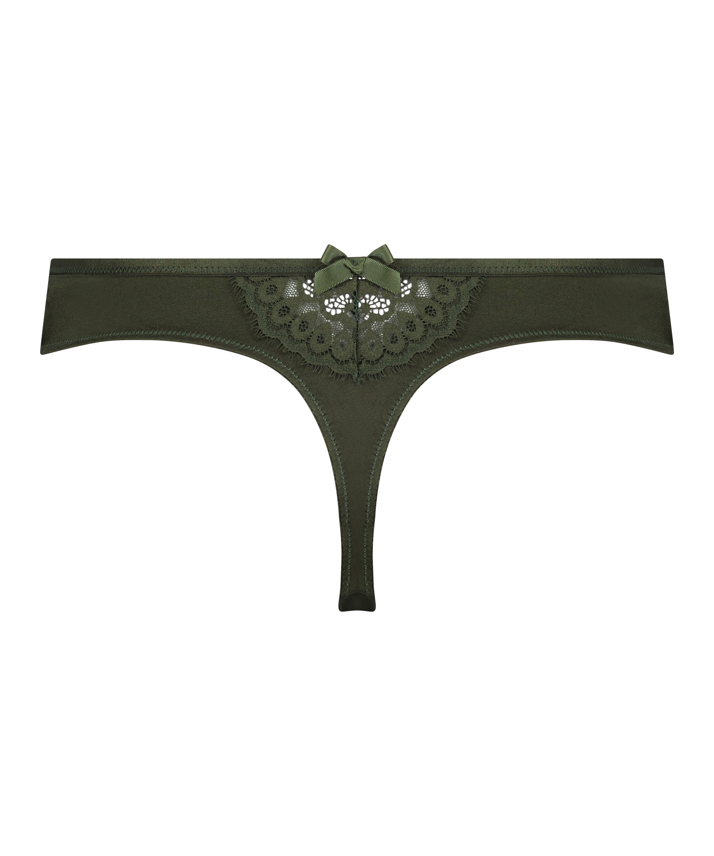 Complete your set with this thong. It's made of lace and has a bow on the back. Combine it with the matching bra for a complete set.