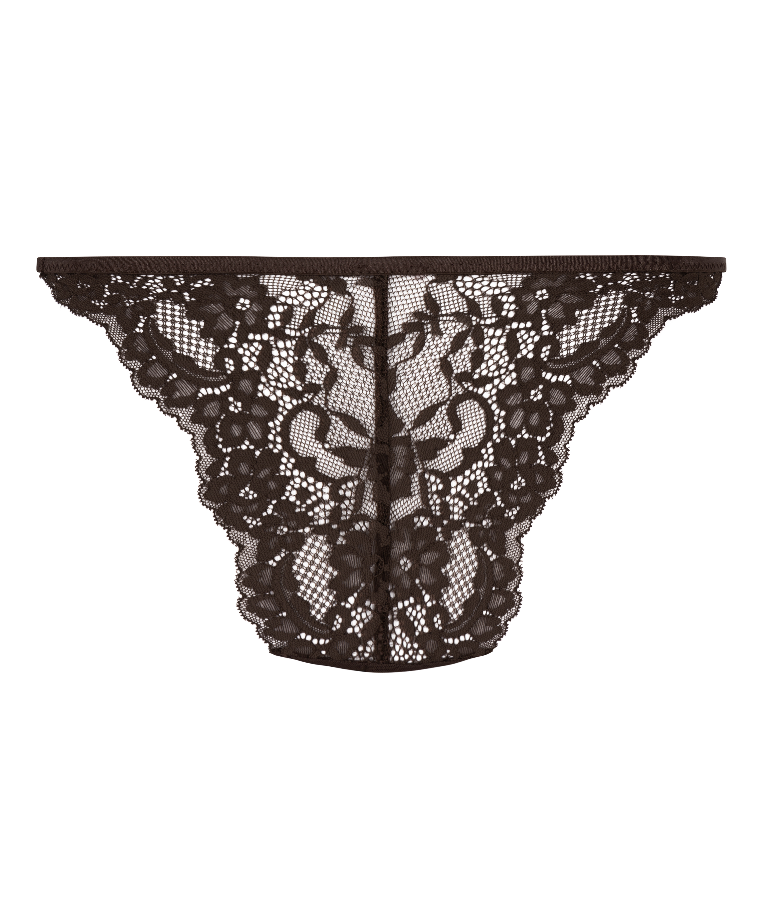 Feel and look stunning in these Brazilian panties! Crafted from ultra-elastic material for the perfect fit, they feature delicate floral lace and cutout details.