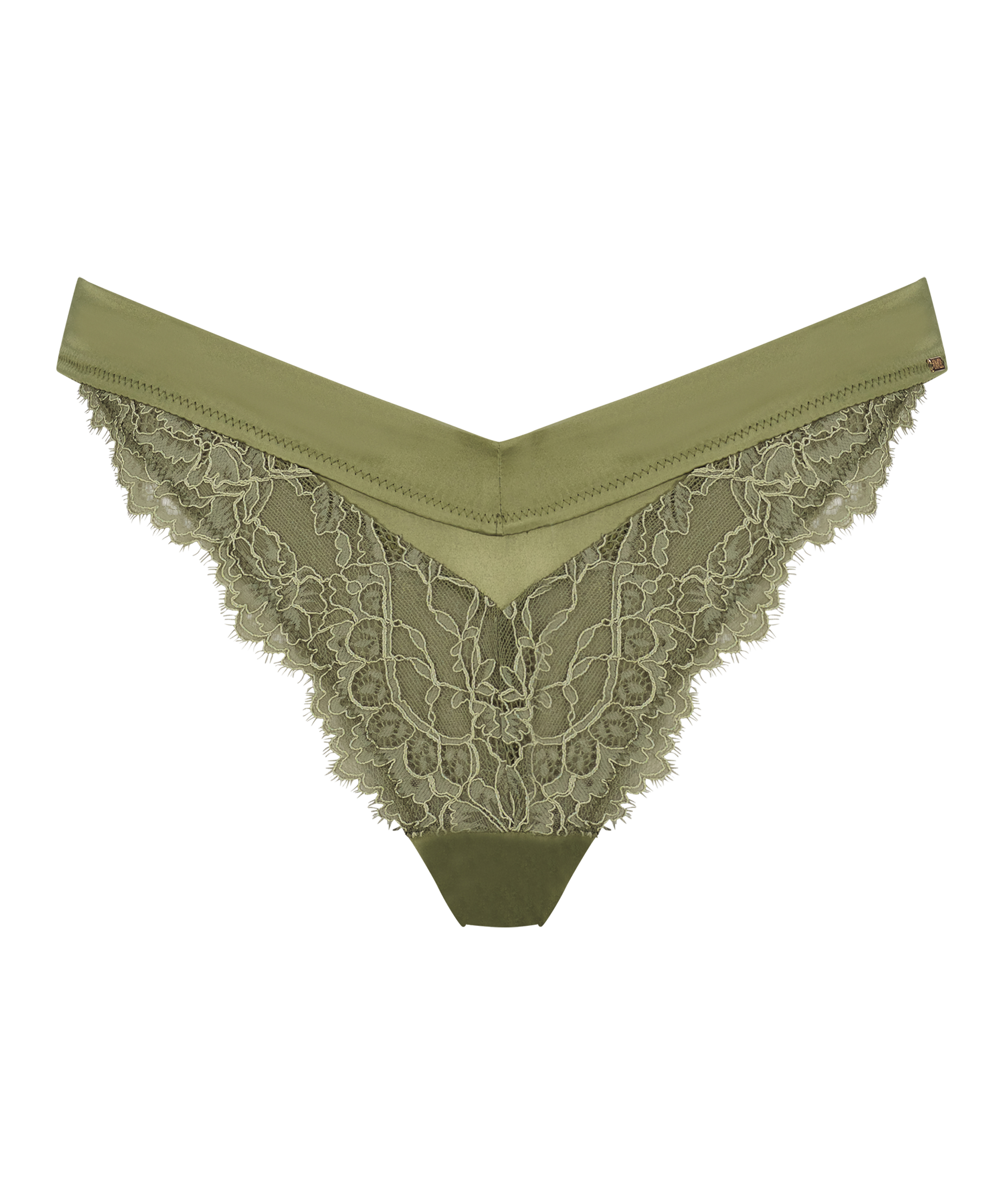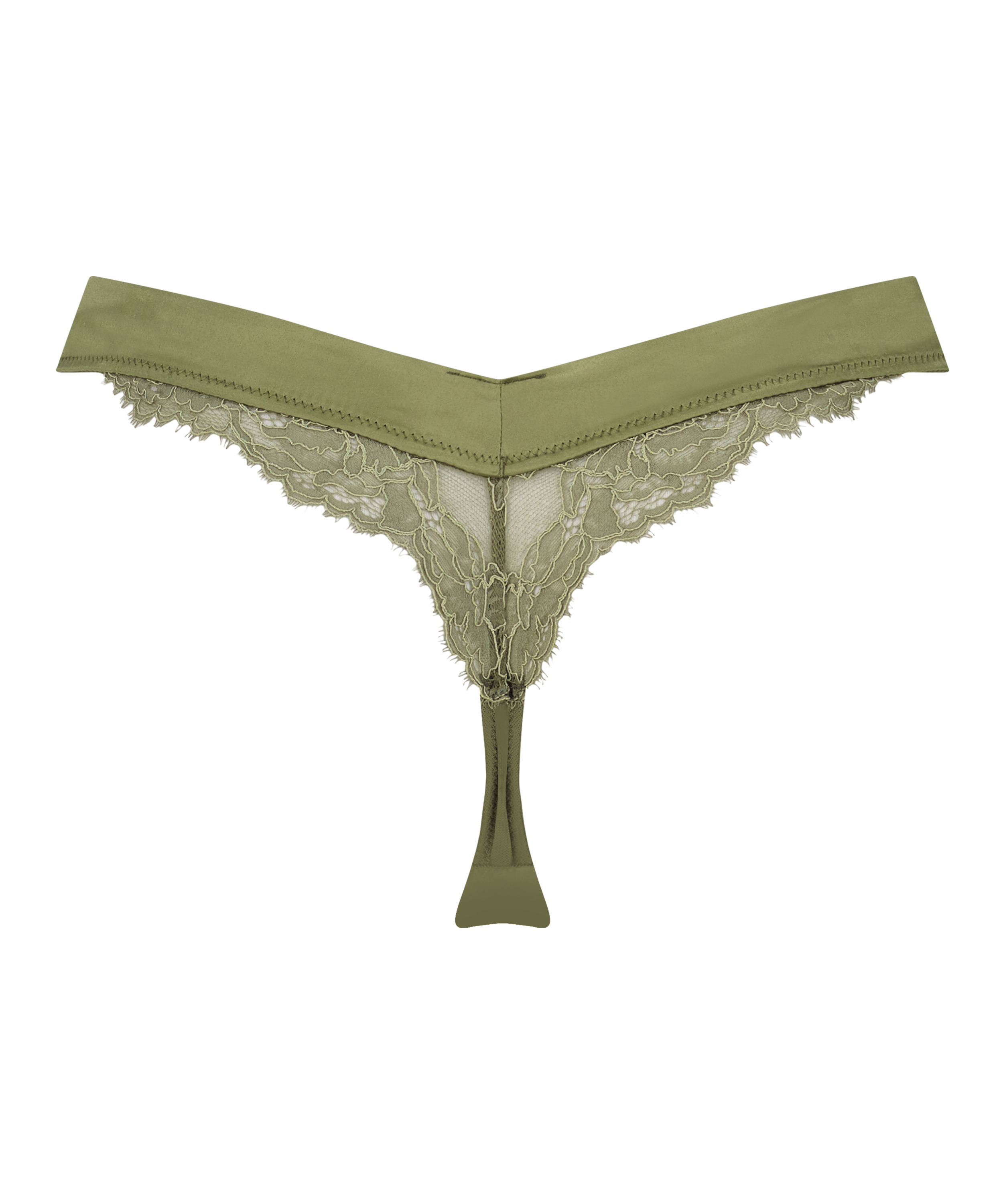 Create an elegant look with this beautiful thong! It has loads of lace at the front and mesh at the back. Combine with matching items for a complete set! Part of the Noir Collection.