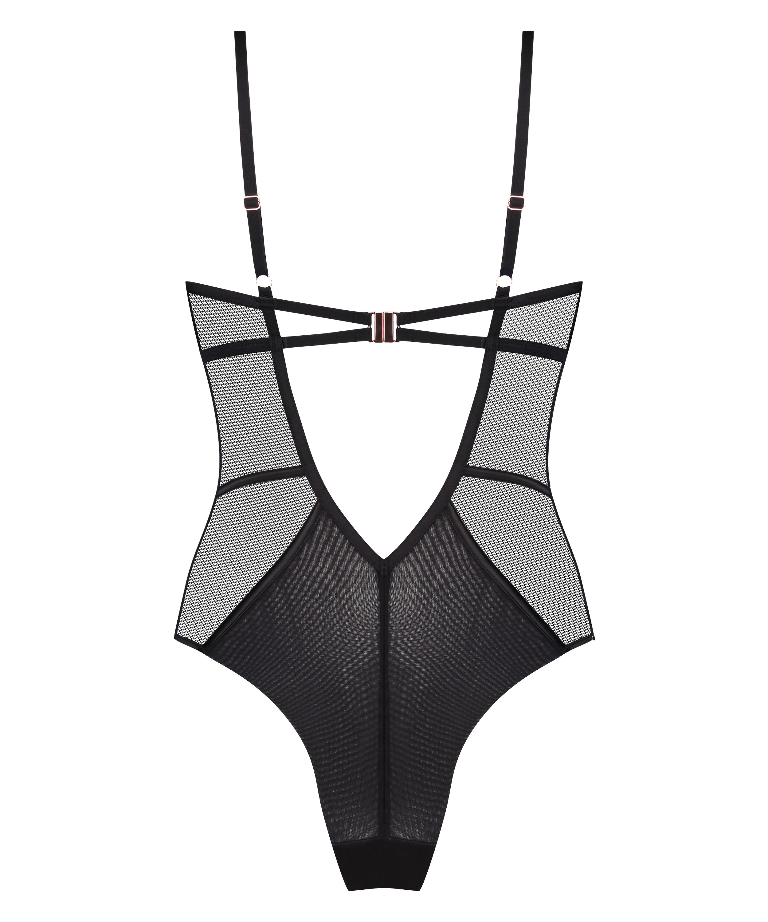 This bodysuit combines delicate lace and mesh for an elegant yet alluring look. Structured underwire and boning offer support and a flattering silhouette. Adjustable straps ensure a customized fit, while sheer panels add a sophisticated touch. Designed for both style and comfort, it’s a refined, daring lingerie piece.