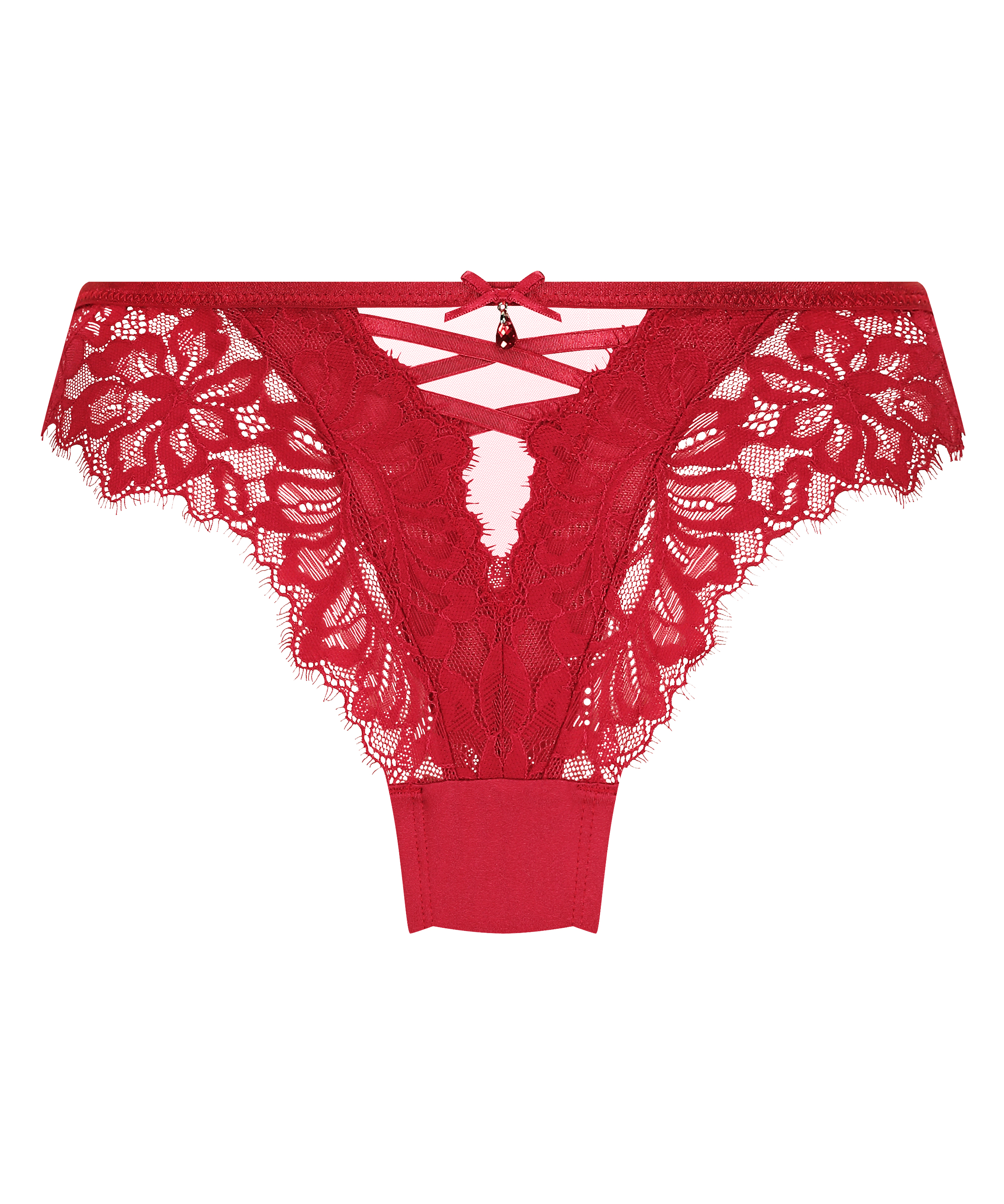 These Brazilian knickers are finished with all-over lace for a super sexy look. A small bow in the middle adds a finishing touch. Combine with the matching bra for a complete look.