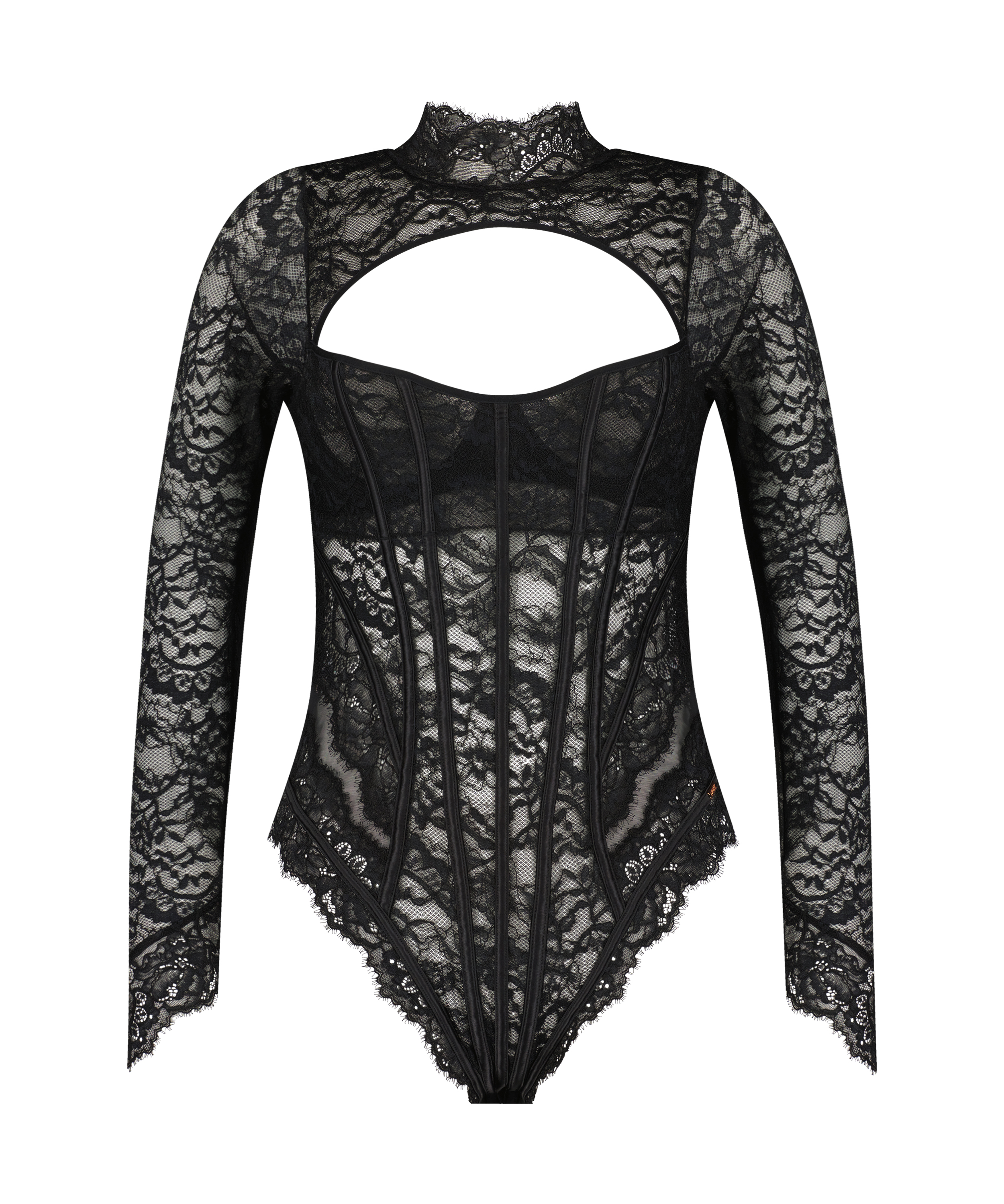 This body is an absolute must-have in your wardrobe! It is made completely of lace and has long sleeves, so it can be worn with jeans! Part of the Noir Collection.