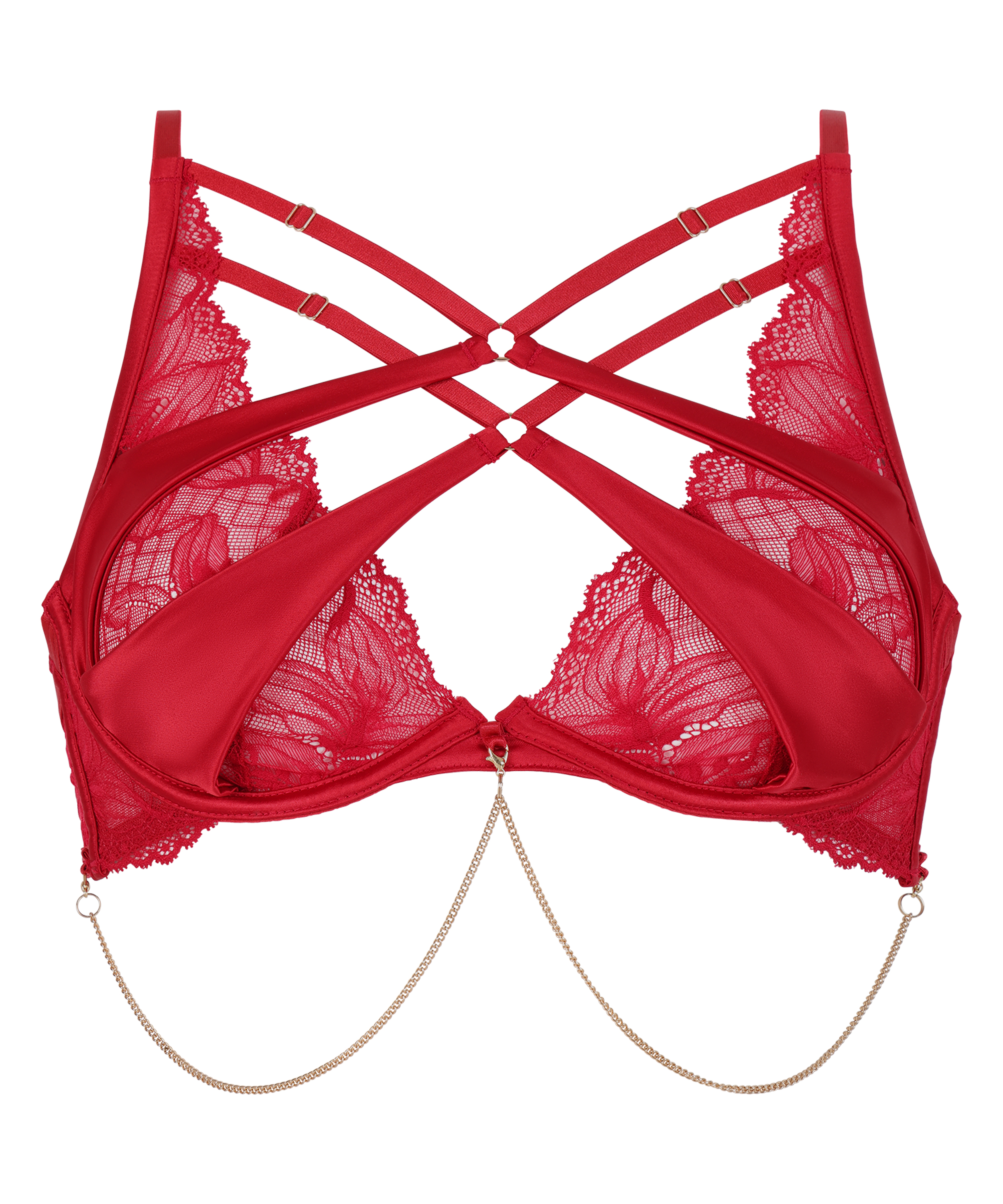 This sexy bra is absolutely gorgeous! It has adjustable shoulder straps and underwired cups for more comfort. The lace on the front and the removable golden chain gives this bra a sexy look. Combine with the matching knickers. Part of our Private collection.
