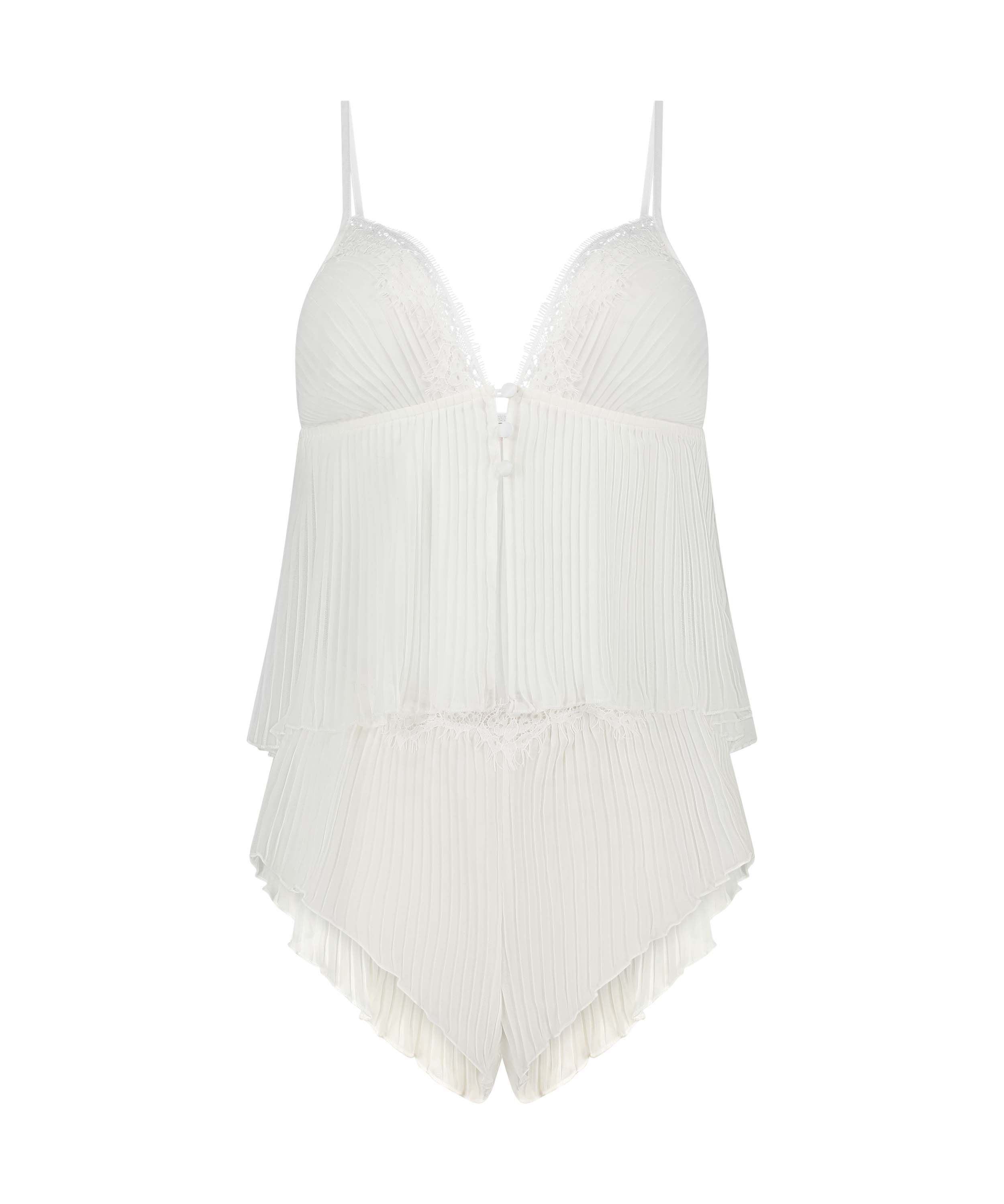 Look amazing in this beautiful pyjama set! The pretty chiffon plisse cami set has lace and thin spaghetti straps. Part of the Noir Collection.