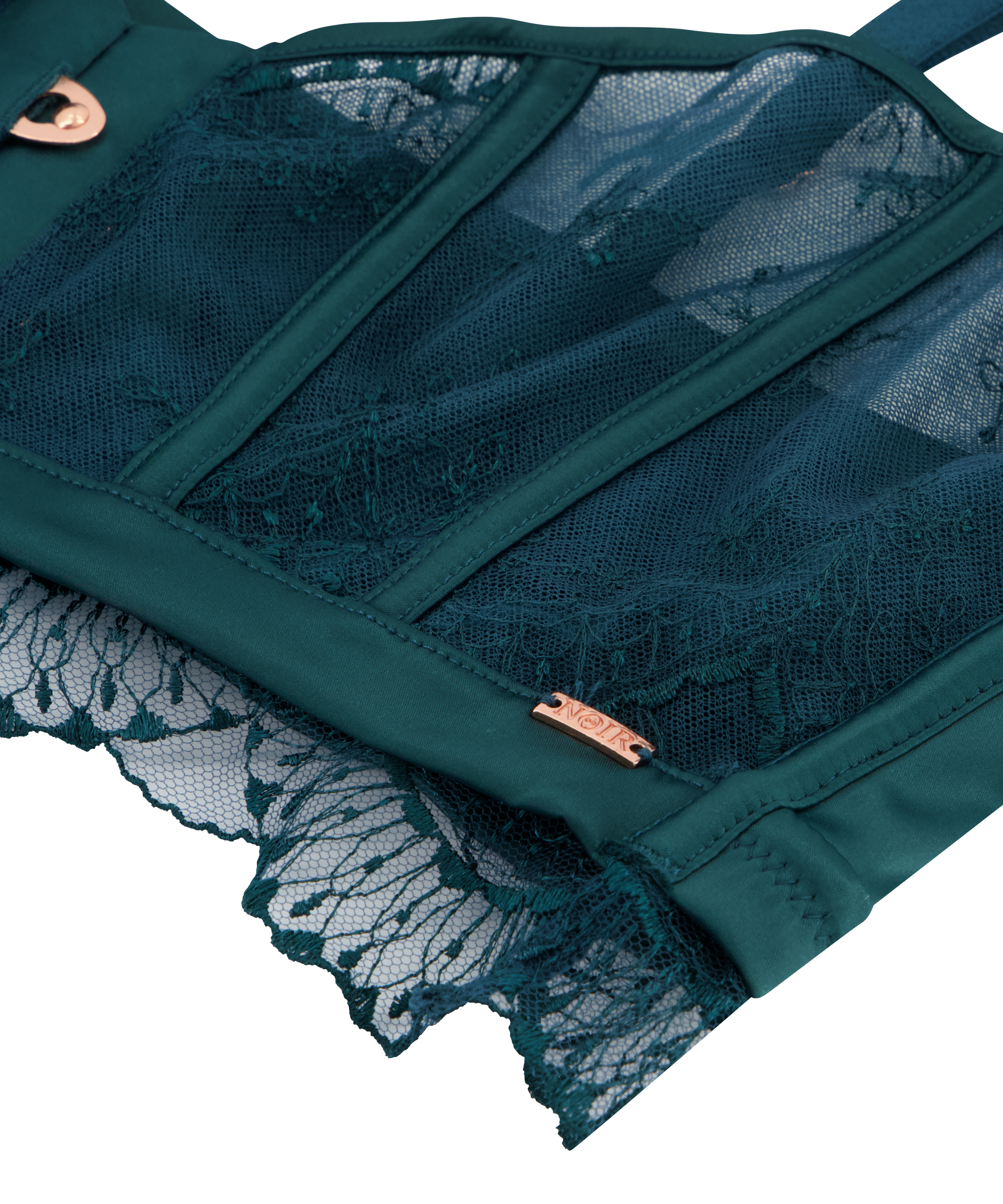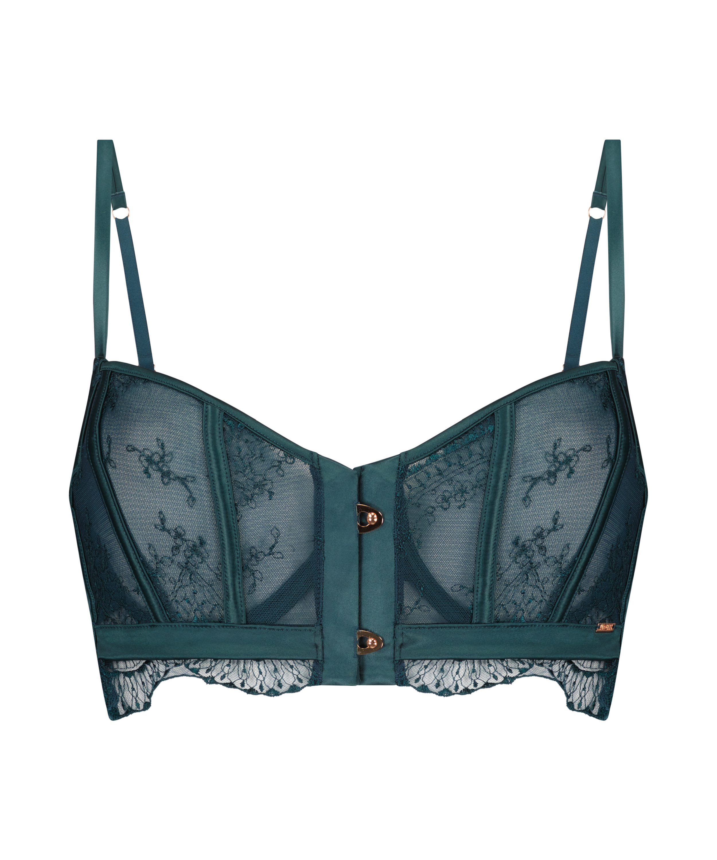 This bra will look great on you! It is finished with lace and mesh and has a fastening at the front. Combine with the matching items for a complete look!